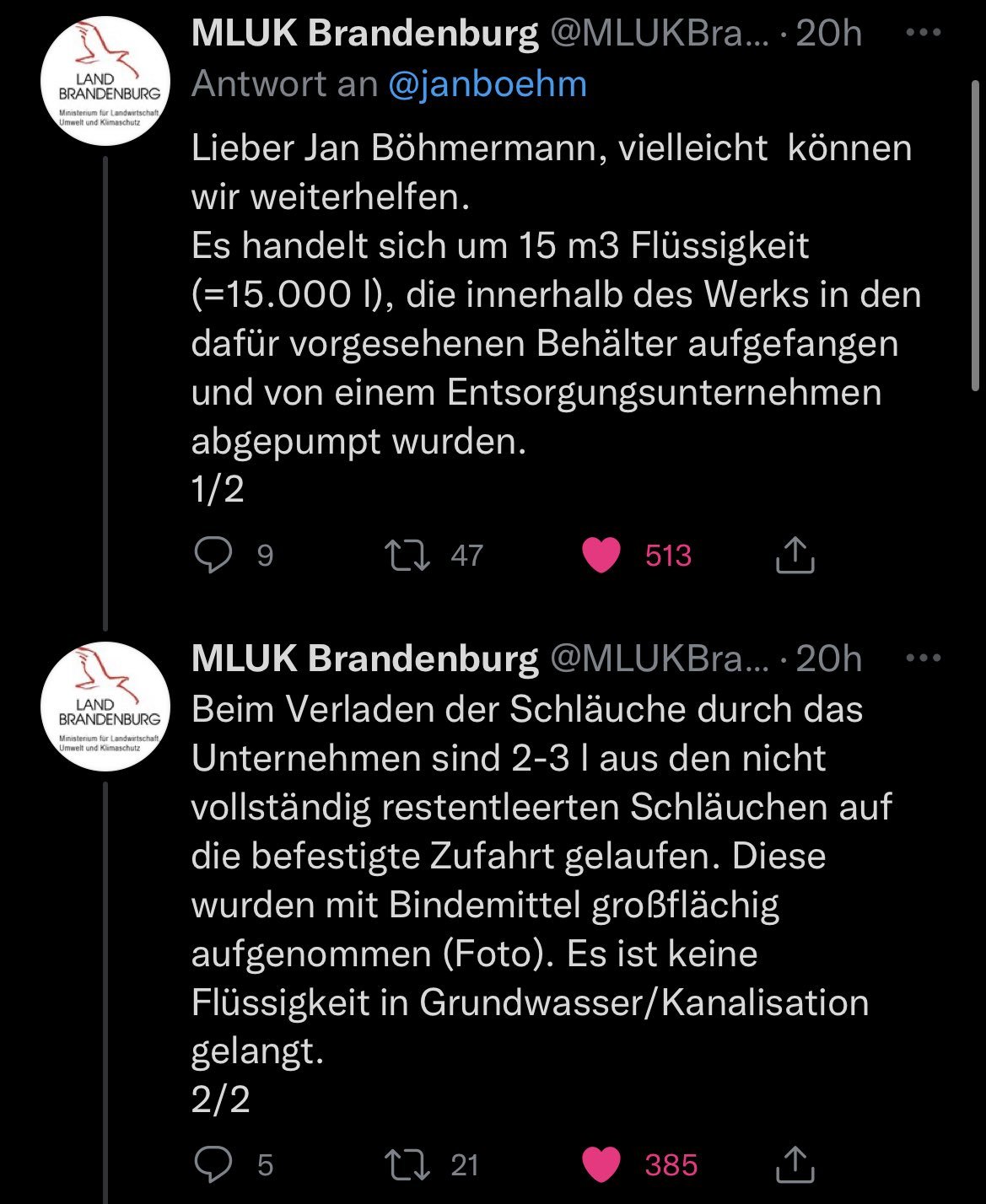 herbert_21 April 22, 2022 Am 20.4.2022 um 08:40 von pillul: Mhmm geht ja gut los: https://www.tagesspiegel.de/berlin/havarie-einen-monat-nach-der-eroeffnung-15-000-liter-chemikalien-in-tesla-lackiererei-ausgelaufen-verbaende-fordern-aufklaerung/28262414.html Dichtung und Wahrheit Quelle: https://twitter.com/JulianMSp/status/1517423258857099265?t=BZ9S0xOw71qeoWwSeXdxOw&s=19 Diesen Beitrag teilen Link zum Beitrag