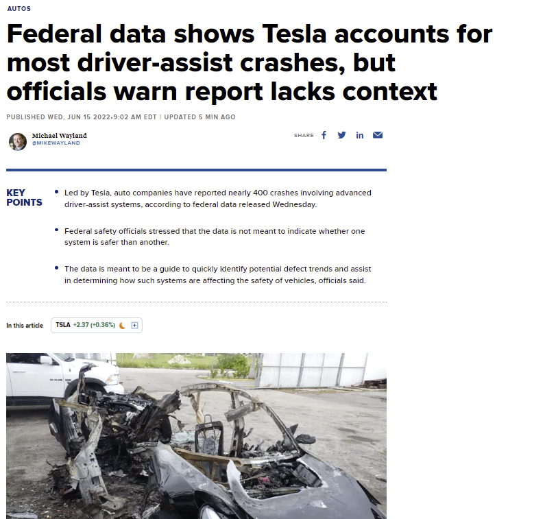 herbert_21 Juni 15, 2022 Tesla braucht ein PR Department. Erklärung im Bild. https://www.cnbc.com/2022/06/15/data-shows-tesla-accounts-for-most-reported-driver-assist-crashes-but-officials-warn-report-lacks-context.html Diesen Beitrag teilen Link zum Beitrag