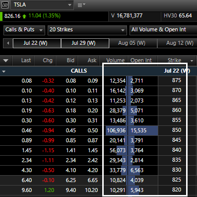 Siehst Du das Volumen der entsprechenden Calls von $860-$900 Dollar mit Ablaufdatum gestern, das entsprechend gehandelt wurde? Die $850 Calls sind schon lange Schnee von letzter Woche. 116.025 Calls mit einem Strike von $880 wurden über den Tag gehandelt.