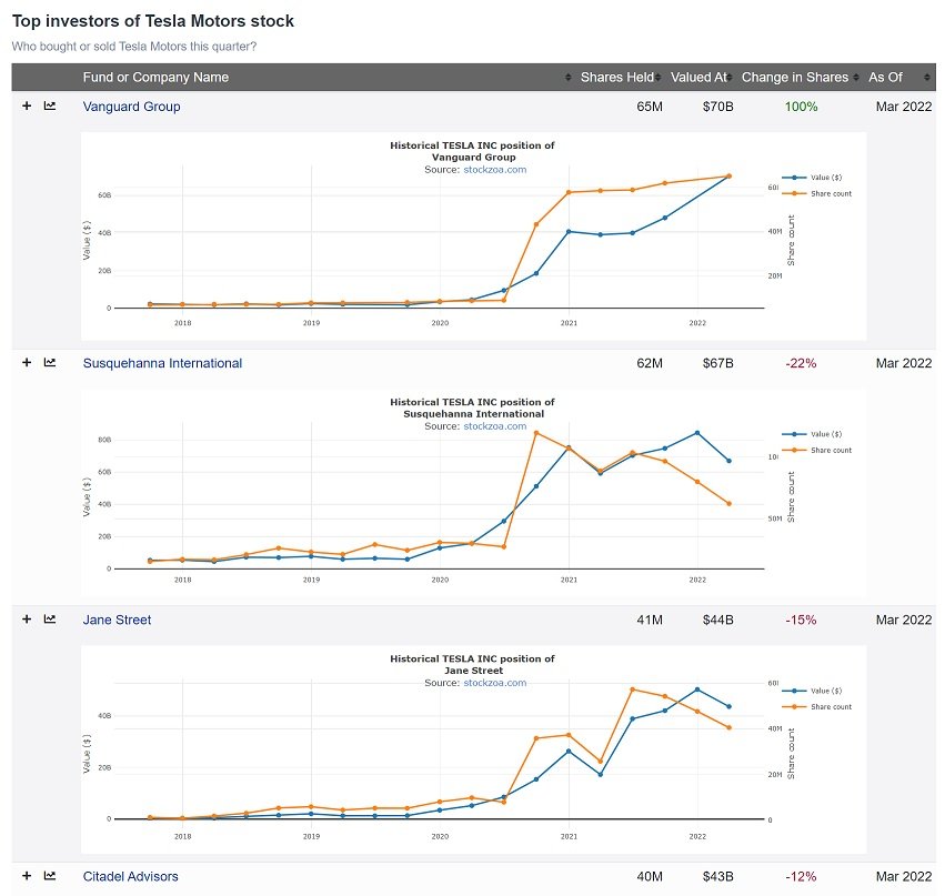 Hast Du Dich nie gefragt, wie solche Geschichten funktionieren? Tesla's (TSLA) Hidden Billionaire: How One Retail Investor Made $7 Billion - Bloomberg und Retail Investor Built $7 Billion Tesla Stake After Initially Being Wiped Out (businessinsider.com) Oder warum Vanguard (65 Mio Aktien), Susquehanna (62 Mio Aktien), Jane Street (41 Mio Aktien), Citadel (40 Mio Aktien) & Co. die größten Käufer von Tesla-Aktien sind, seitdem über das massive Call Buying-Programm der Kurs explodierte?