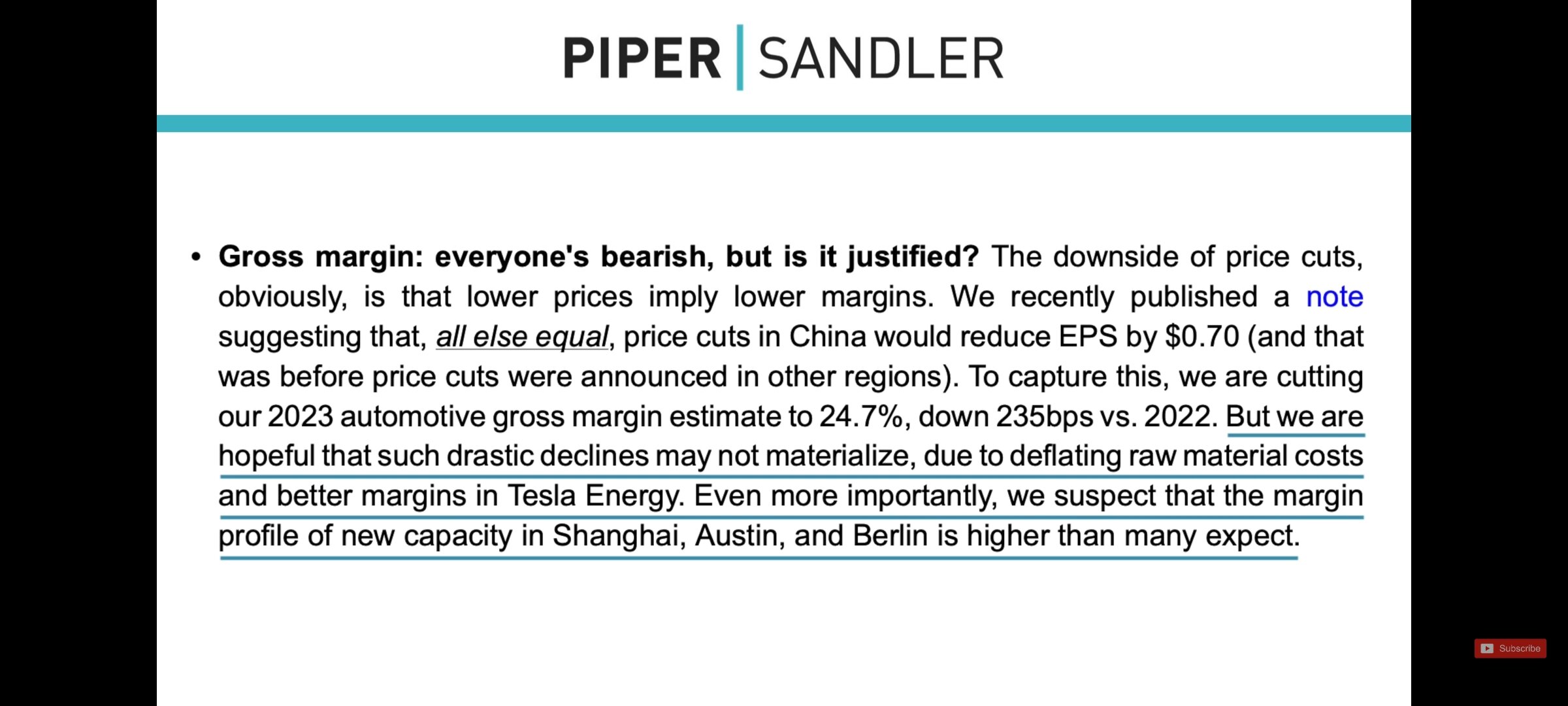 herbert_21 Januar 19, 2023 · bearbeitet Januar 19, 2023 von herbert_21 Zu Beginn des Beitrags geht's um Alexander Potter von Piper Sandler 340 -> 300$ Kursziel Rating: Overweight 300.000 bis 600.000 zusätzliche Einheiten allein in US nur durch den 7500$ Credit. EPS für 2023 5 Dollar Gross Margin 24,7% "but could surprise to the Upside" siehe Bild unten Auswirkung von Shanghai price cuts "all else equal" seien 70 Cent non-gaap EPS Kommentar von CFO Zach in Q3 zu fallenden Rohstoffpreisen: zeigen sich mit Verzögerung @fintech @Michalski und @Holgerli Meinungen zu den von Rob Maurer angegeben Gründen, warum das Inventory nicht 0 ist? Diesen Beitrag teilen Link zum Beitrag