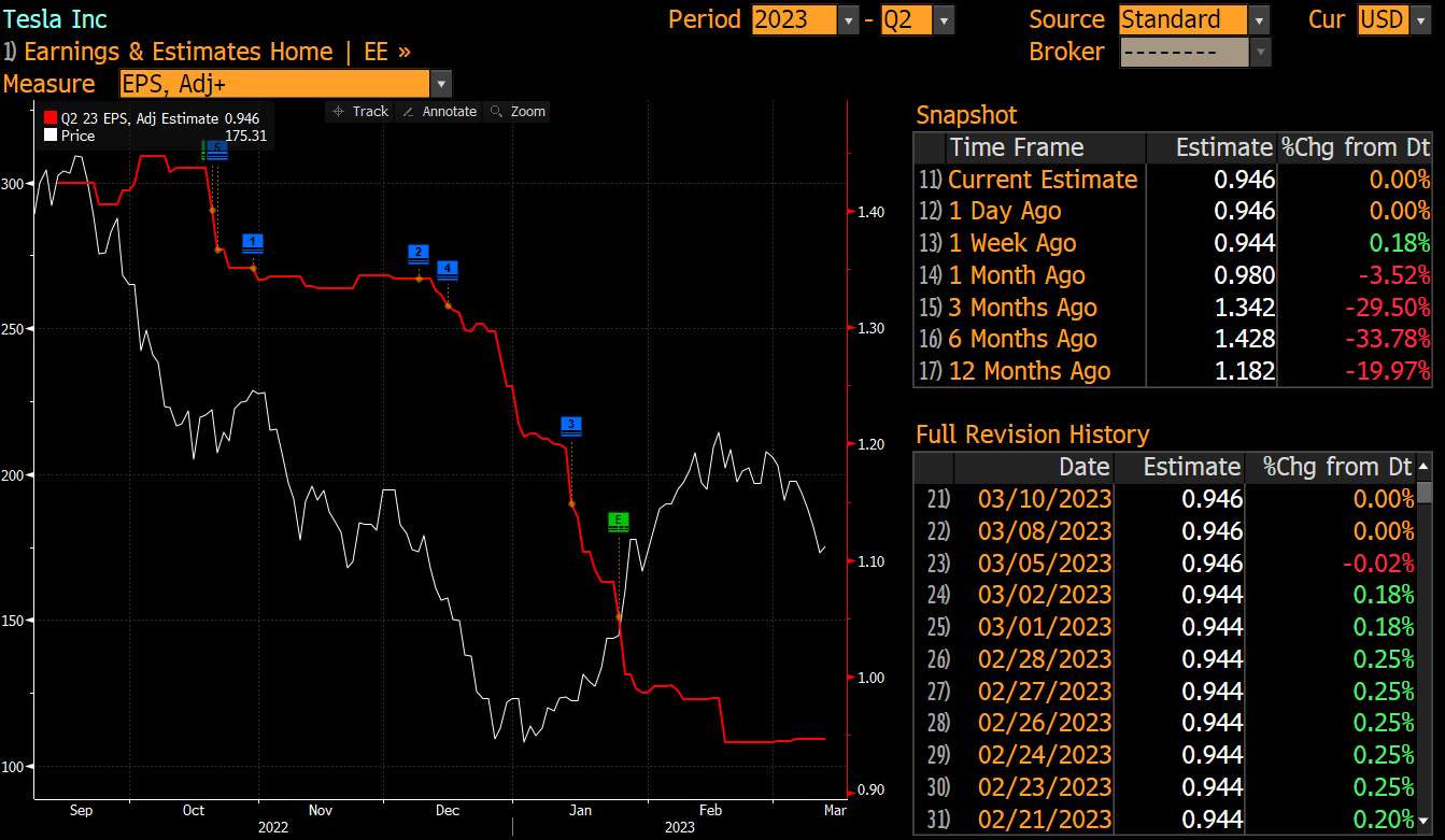 Troi Teslike geht für das Q1 2023 von 412.000 Deliveries weltweitaus. "Analyst consensus" ist 428.000 Deliveries.