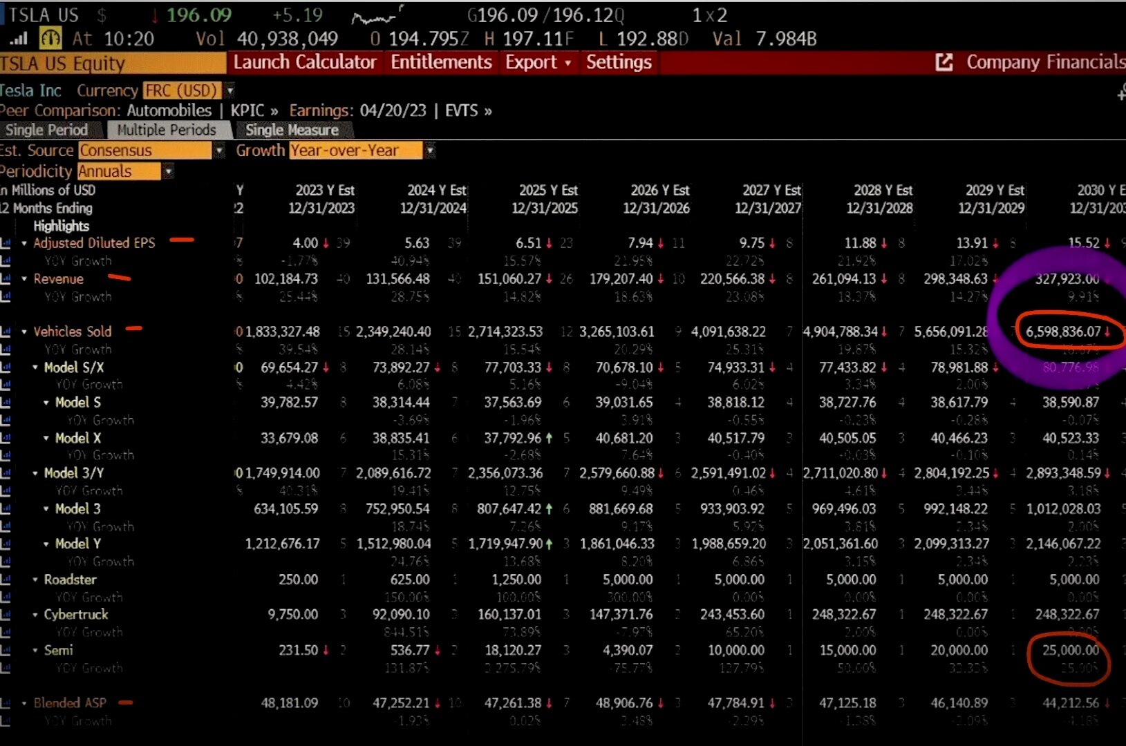 Nein, der Cybertruck Absatz wird nicht bei 250.000 stagnieren, und nein, die Absatzzahlen werden 2030 auch nicht bei unter 7 Mio liegen, sondern eher bei 11 oder wenn's nach Teslas eigenen Prognosen geht,  20 Mio.