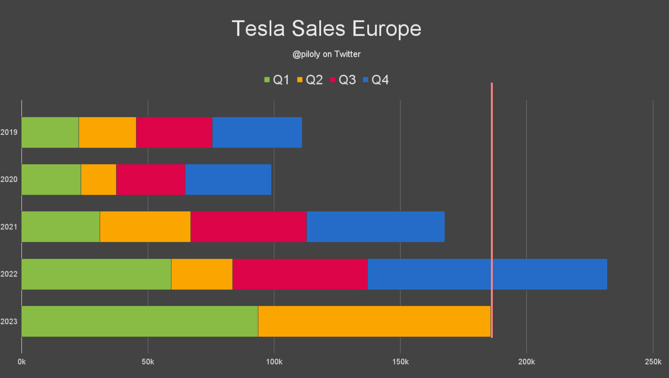 Die KBA meldet Rekordabsatzzahlen für Tesla in Deutschland. Glatte 8.044 Stück wurden verkauft. Wieviele waren es nochmal im März 2023 (letzter Monat Q1)? Da waren es 8.703 (-8%). Und im Dezember 2022 (letzter Monat Q4)? 17.501 (-54%)! Die Verkäufe in Deutschland sind ja der Burner! Quelle: Fahrzeugzulassungen im Juni 2023 - Halbjahresbilanz
