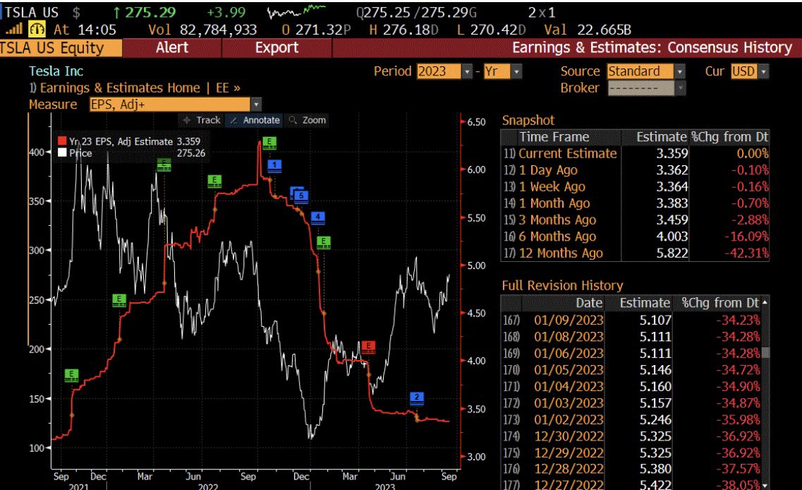 herbert_21 September 14, 2023 · bearbeitet September 14, 2023 von herbert_21 Zitat Das Unternehmen äußerte sich auch begeistert über den bevorstehenden Cybertruck, dessen Produktions- und Auslieferungsstart im Jahr 2024 geplant ist, sowie über einen möglichen Halo-Effekt auf die Nachfrage nach seinen anderen Fahrzeugen. Tesla bestätigte vor allem, dass seine Fahrzeugplattform der nächsten Generation, die weltweit über 5 Millionen Jahresproduktion ausmachen könnte, höchste Priorität und größte Wachstumschance hat, gefolgt von der Arbeit an FSD, Al und Dojo. Alles in allem sehen wir weiterhin ein gewisses Risiko für die Street-Erwartungen 2023/24, da Tesla die Preise anpasst, um sein Volumenwachstum in einem herausfordernden Makroumfeld zu sichern, bleiben aber hinsichtlich der längerfristigen Chancen von Tesla optimistisch und bekräftigen unsere Kaufempfehlung. Tesla stellte klar, dass sowohl das Produktions- als auch das Liefervolumen im dritten Quartal gegenüber dem Vorquartal zurückgehen werden, was auf geplante Fabrikschließungen rund um den Globus zurückzuführen ist. Wir stellen fest, dass dies auf ein Abwärtsrisiko für den derzeitigen Konsens über flache Lieferungen hindeutet. Im zweiten Quartal verfügte das Unternehmen über etwa 16 Verkaufstage auf Lagerbeständen, bei denen es sich größtenteils um Transportfahrzeuge handelte. Der tatsächlich verkaufbare Lagerbestand lag im einstelligen Bereich, was nicht ausreichte, um die Produktionsauswirkungen der Stillstände im dritten Quartal auszugleichen. Da das Volumen im dritten Quartal zurückgegangen ist und ein Großteil der Rohstoffvorteile bereits im zweiten Quartal zu verzeichnen war (obwohl im dritten Quartal immer noch einige moderate Vorteile zu verzeichnen waren), bestünde die größte Kostensenkungsmöglichkeit im weiteren Hochlauf von Berlin und Texas. Allerdings wurde das Volumen pro Woche sowohl in Berlin als auch in Texas tatsächlich von 5.000 pro Woche gesenkt, um die Kosten und den Kapazitätsaufbau zu verbessern, wodurch die Vorteile des Hochlaufs sequenziell begrenzt wurden. | Emanuel Rosner, Deutsche Bank, Kaufen, Kursziel 300$ heutige Keynote P.S. fallende EPS und steigende Kurse ;-) Diesen Beitrag teilen Link zum Beitrag