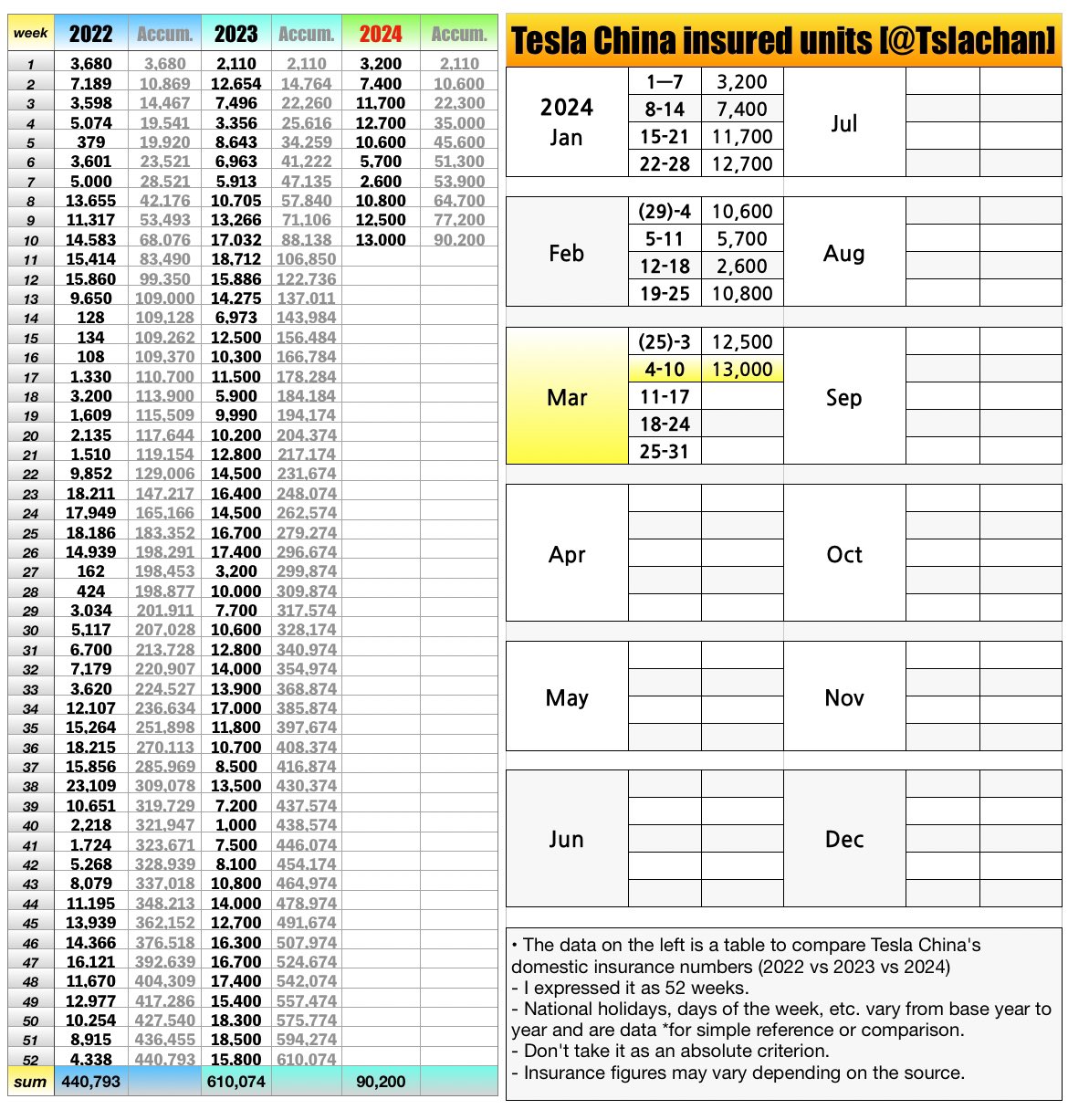 Michalski März 27, 2024 Tesla will die Batterieproduktion in Nevada ausbauen und eine kleine Anlage eröffnen, in der ungenutzte Geräte der chinesischen Contemporary Amperex Technology Co. Ltd. verwendet werden. Der Autohersteller plant, Maschinen von CATL zu kaufen und in der Stadt Sparks zu installieren. Tesla wird die volle Kontrolle über die Anlage haben und 100 % der Kosten übernehmen., CATL-Mitarbeiter werden nicht über die Hilfe bei der Einrichtung der Ausrüstung hinaus beteiligt sein: Tesla (TSLA) to Open New US Battery Plant in Nevada With CATL Equipment - Bloomberg Wie groß war nochmal der Anteil des Batteriegeschäfts an Morgan Stanleys Aktienkurs-Potentials und warum kann Tesla die vollmundigen Ankündigungen des Battery Days immer noch nicht umsetzen? Kann es sein, dass Tesla gar keinen technologischen Vorsprung hat? Aber hey, Tesla ist kein Autobauer, sondern ein Tech-Unternehmen Why Wall Street Suddenly Hates the Stock. - Barron's (barrons.com) Die Länder in Europa, von denen wir tägliche Zulassungszahlen haben, zeigen, dass Teslas Auslieferungen in diesem Quartal sowohl hinter dem letzten Quartal liegen, als auch hinter dem gleichen Quartal des Vorjahres. Soll ich nochmal die frühen Jubelmeldungen hier raussuchen für die "Rekordzahlen" im Januar und Februar? Dabei war schon immer klar, dass der März im letzten Jahr mit dem End of Quarter Push nicht zu schlagen sein wird. Teslas Wachstumsstory ist nicht nur beim Umsatz beendet, sondern auch bei den Fahrzeugauslieferungen. Electric Vehicle registrations in Europe: 15 countries, majority of BEV market (eu-evs.com) Diesen Beitrag teilen Link zum Beitrag