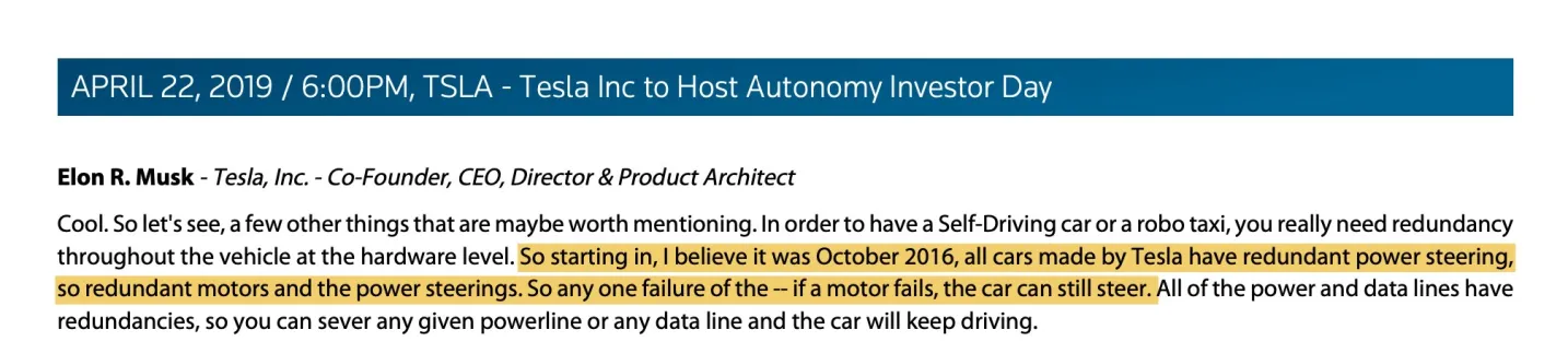 Michalski Mai 22, 2024 · bearbeitet Mai 22, 2024 von Michalski Flotten bekommen jetzt in Europa Sonderrabatte: Tesla in damage-control mode as European leasing companies suffer from its retail price cuts - Fast Company Tesla wooing leasing firms with discounts and better service after price cuts hit fleets' values – Car Dealer Magazine Die nächsten Preissenkungen in Europa und Australien folgen. Dass in Norwegen das Model 3 Refresh "Highland" in der Performancevariante mal eben um 10 Prozent im Preis reduziert wird, bevor die ersten Auslieferungen beginnen, muss ein Zeichen der Stärke sein. So würden es tradierte Tesla-Fans wohl formulieren. FSD scheitert übrigens auch in der neuesten Inkarnation an einem simplen Stopp-Schild, aber hey, Robotaxis ab 8. August! Was die tradierten Tesla-Fans hier meist vergessen: Tesla hat mehr als 1 Million Fahrzeuge gebaut und ausgeliefert ohne redundante Lenkungssteuerung (STEERING GEAR ASSY, LEFT HAND DRIVE, DEPOP 1044831-Steering Rack). Wenn sie keinen gigantischen Rückruf initiieren, und diese Autos nachrüsten, sind die alle nicht fähig, autonom fahren zu können! Ein Level 3 zertifiziertes Fahrzeug nach ALKS/R157 muss zum Beispiel eine redundante Bremsung und Lenkung besitzen. Der zweite Chip von dem Bild fehlt schlichtweg: Tesla cut a steering component to deal with chip shortage (cnbc.com) Mercedes war der erste Hersteller, der die harten Anforderungen der ALKS/R157 erfüllt hat (Redundanzen wie 2 Bordnetze, Fail-Safe Prinzipien bei Komponentenausfällen, Cyber Security...), BMW seit kurzem auch. Hat ein Tesla überhaupt zwei Bordnetze um eine Kollision mit einem plötzlich auftauchenden Fußgänger bei Bordnetzausfall sicher zu beherrschen? Was ist, wenn der Lenkmotor ausfällt, gibt es einen zweiten? Nein! Die Lenkungssteuerung selbst ist beim Model 3 und Model Y gar nicht komplett redundant aufgebaut. Tesla fehlt ein zweiter Motor, was die Werbeaussage, alle Teslas hätten seit 2016 die Hardware für vollständig autonomes Fahren on board und es müsse nur noch die Software aktualisiert werden, schon wieder als Lüge offenlegt, Es zeigt sich mal wieder, dass der einzige Grund, FSD jetzt so zu hypen, die Tatsache ist, dass die Aktie unter Druck ist. Panasonic hat übrigens gerade eine Gewinnwarnung rausgegeben wegen drastisch sinkender EV-Nachfrage ihres Kunden in den USA und stoppt wohl die Investitionen in neue Batterieproduktionskapazität in den USA: Panasonic Reconsiders US Battery Expansion Amid EV Slowdown - Finimize P.S.: Bloomberg ist auch total bullish, was Teslas Europa-Verkäufe angeht! Tesla (TSLA) Europe Sales Fall to 15-Month Low in Slow Start to Q2 - Bloomberg Diesen Beitrag teilen Link zum Beitrag