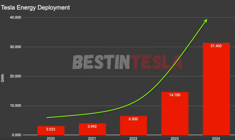 Holgerli Januar 4, 2025 Weil ja auch immer die Frage aufkommt: Wie wichtig ist denn mittlerweile die Sparte „Energy“ mit den Megapacks, den großen Batterieenergiespeichersystemen (BESS)? Ich denke, dass das Bild sehr deutlich zeigt, wie groß das Wachstum ist. Im 4. Quartal 2024 allein wurden 11.0 GWh installiert. Die „Megafactory“ in Lathrop hat einen jährlichen Output von 40 GWh. Auf das Jahr hochgerechnet produziert die Fabrik damit am Limit. Es ist aber gerade eine zweite „Megafactory“ mit nochmal 40 GWh Jahresoutput im Bau. Diese soll im Q1 2025 in Shanghai in Betrieb gehen. Wird spannend ob es Tesla auch in 2025 schafft, den Output nochmal zu verdoppeln. Und zumindest ich bin gespannt, ob Tesla den Bau einer weiteren „Megafactory“ 2025 bekannt gibt, denn wenn das Wachstum anhält, und Experten gehen davon aus, dass Großakkuspeicher weltweit (und nicht nur in Deutschland) auf dem Vormarsch sind, dann läuft auch die „Megafactory“ in Shanghai 2026 am Limit. Ein Blick auf die Frage, wie gut Tesla in dem Segment international aufgestellt ist: Zurzeit gibt es zwei Rankings die die Hersteller von Akkus nach finanzieller und technischer Nachhaltigkeit einzuordnen wollen: Beide Male führt Tesla die Liste an: Sekundär Quelle: Sawyer Merritt auf X Primär Quelle: Sinovoltaics Quelle: Battery StorageTech bankability report Diesen Beitrag teilen Link zum Beitrag