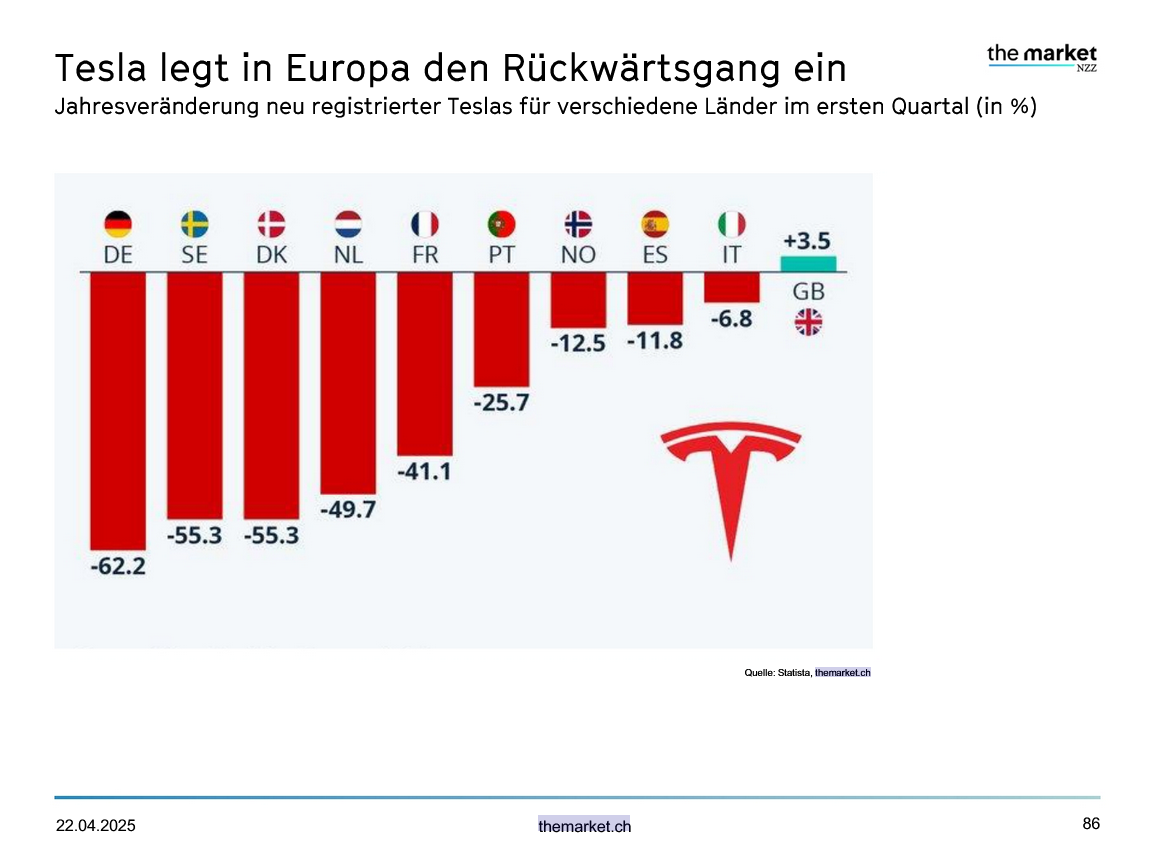 Vette April 23, 2025 "Unter dem Strich brach der Gewinn um 71 Prozent auf 409 Millionen Dollar ein." https://www.tagesschau.de/ausland/amerika/musk-tesla-verluste-100.html Heureka! 71% Gewinneinbruch! Mehr braucht man nicht zu schreiben. Hast nicht du Nolgerli geschrieben, das durch den Modellwechsel die Verkaufszahlen steigen werden? Im nächsten Quartal? 3. Quartal? 4. Quartal? Diesen Beitrag teilen Link zum Beitrag