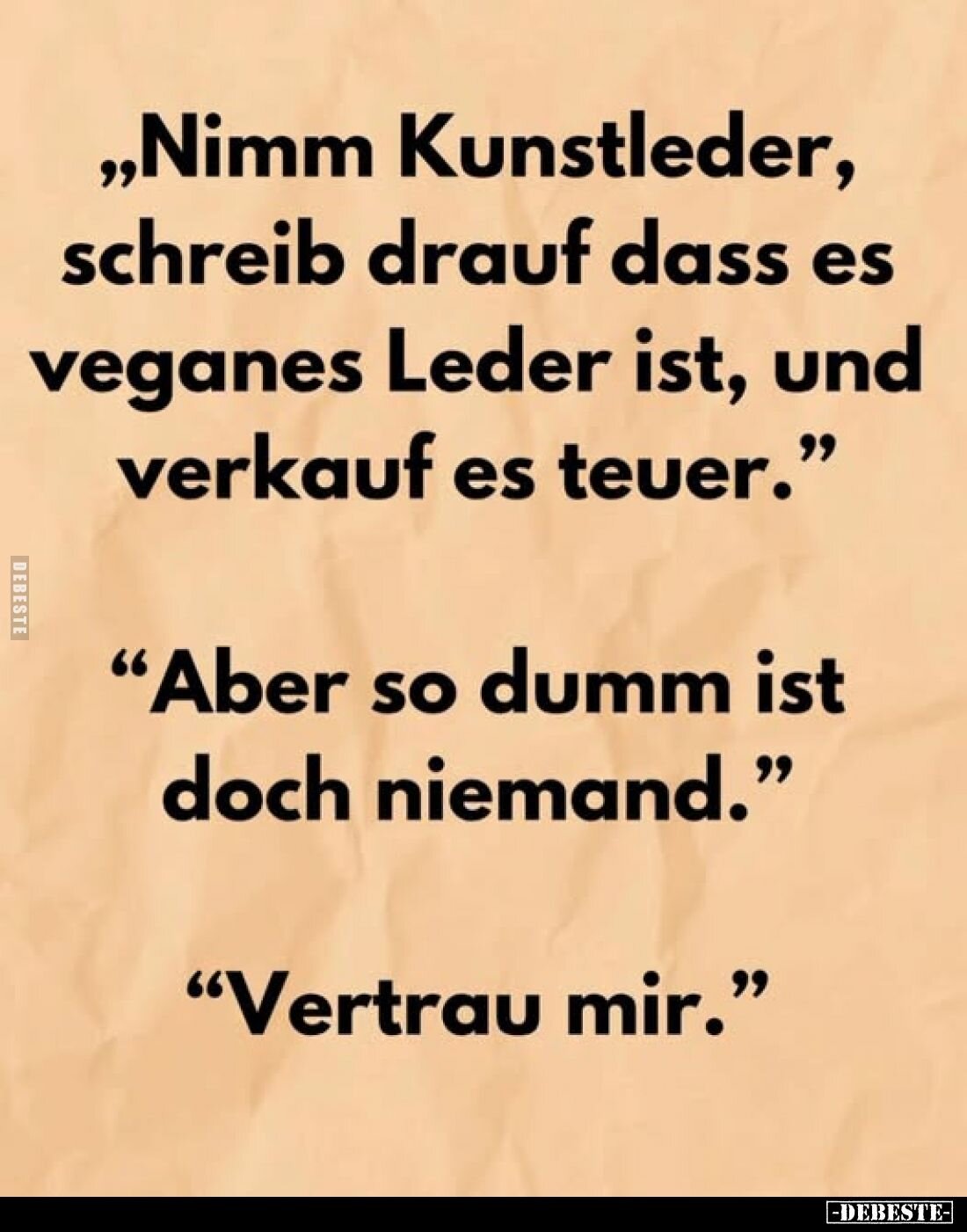 Wer von "veganem Leder" faselt schreibt, weiss entweder nicht was "vegan" und "Leder" bedeutet oder will die Leute absichtlich verarschen. :myop: