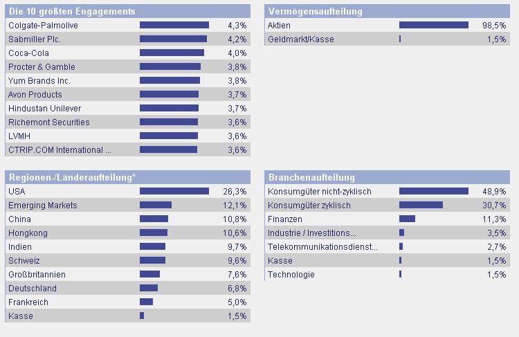 DrNick Oktober 11, 2010 Hallo zusammen, ich habe bislang den Einstieg in den Emerging Markets-Bereich verpaßt und bin mir auch nicht sicher, ob jetzt noch der richtige Zeitpunkt ist, dort einzusteigen. Was mich interessieren würde, wäre nun ein Fonds, der nicht (oder nicht nur) direkt Aktien aus Schwellenländern kauft, sondern der (auch oder hauptsächlich) über Aktien westlicher Firmen von der wirtschaftlichen Entwicklung in den EM profitiert, also indirekt über Firmen wie Nestlé, Daimler oder Coca-Cola. Mir ist bislang nur ein solcher Fonds aufgefallen, nämlich der Nordea Emerging Consumer Fund (LU0390857471) Der exisitiert seit Ende 2008 und hat sich bislang gut geschlagen. Hat jemand eine Meinung zu dem oder kann jemand eine Alternative vorschlagen? Diesen Beitrag teilen Link zum Beitrag