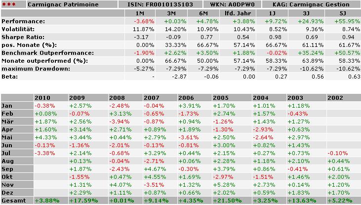 Carmignac Patrimoine A Acc mit der ISIN FR0010135103