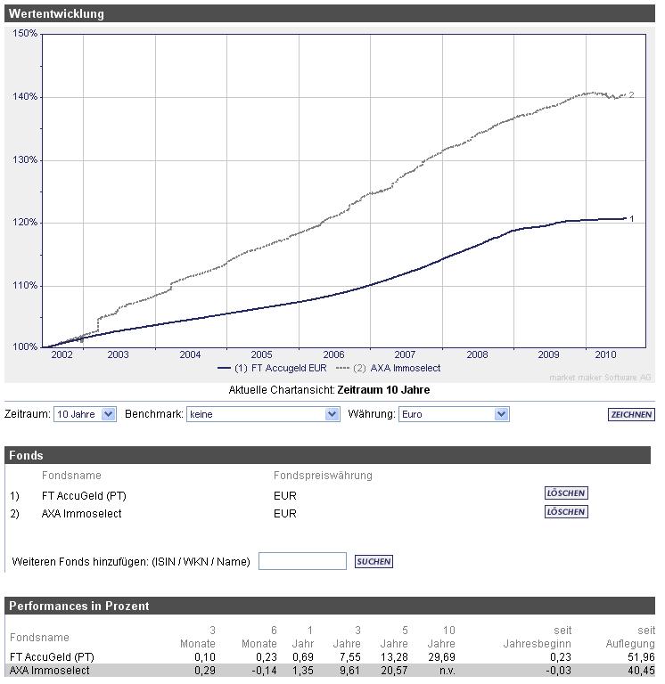 Ariantes Juli 31, 2010 Naja, so wie ich das verstehe, geht hier die FFB den sicheren Weg. Du kannst jederzeit das Geld aus dem Geldmarkt-Fonds rausziehen und in den AXA anlegen, ist es jedoch erstmal im AXA angelegt, so bekommst du es da nicht mehr so schnell raus. Im Endeffekt gibt dir die FFB nur die Möglichkeit, diese Entscheidung selber zu treffen/noch mal zu überdenken, auch wenn du nicht daran gedacht haben solltest, das normalerweise das ausgeschüttete Geld automatisch wiederangelegt wird. Was bei der momentanen Lage bei den Immofonds mglw. von dir nicht gewollt ist. Diesen Beitrag teilen Link zum Beitrag