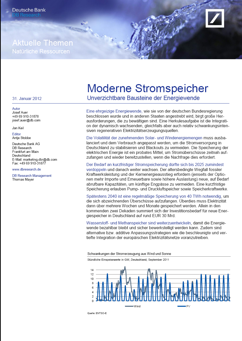 Chemstudent Januar 31, 2012 Aus der Reihe "Aktuelle Themen - Natürliche Ressourcen" von DB Research: Moderne Stromspeicher - Unverzichtbare Bausteine der Energiewende.pdf Diesen Beitrag teilen Link zum Beitrag