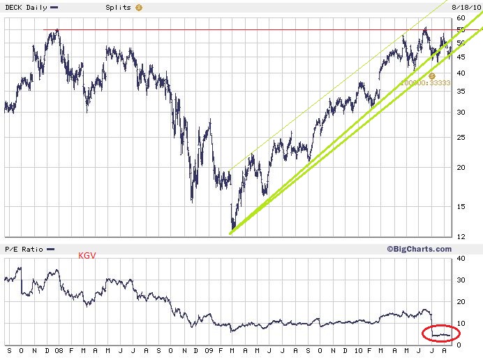 Ich war auch lange in Deckers investiert, nachdem ich in der Uni-Bib durch die UGGs Stiefeln auf dieses Unternehmen aufmerksam wurde. Aber nach 2 Jahren hat die NAchfrage danach extrem abgenommen und es gab zig CopyCats. Den Trendwechsel konnte man auch sehr gut durch Google Trends nachvollziehen. Daran kann auch die Abhängigkeit nach den UGGs nachvollzogen werden.