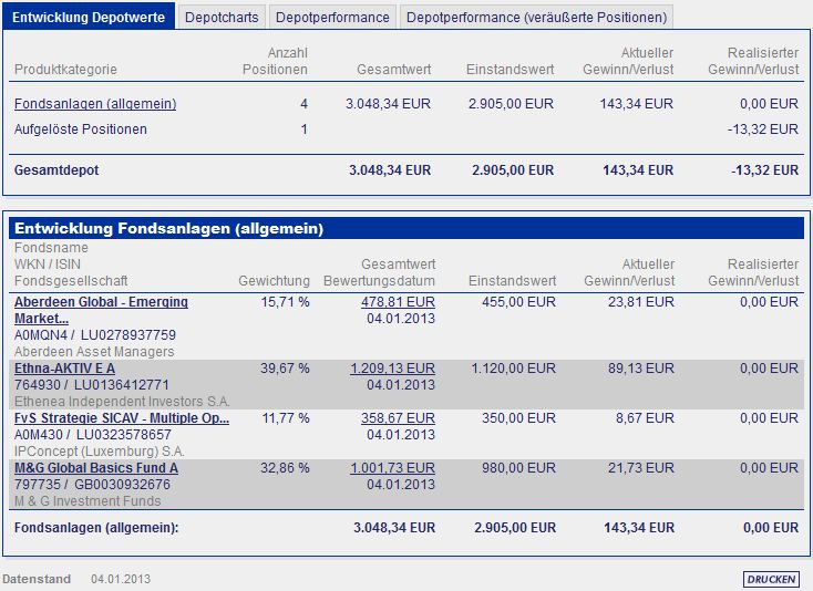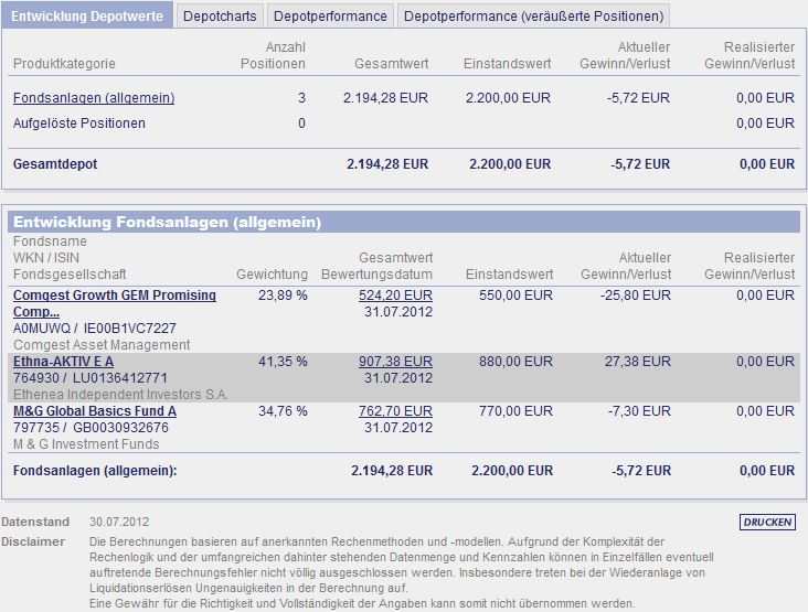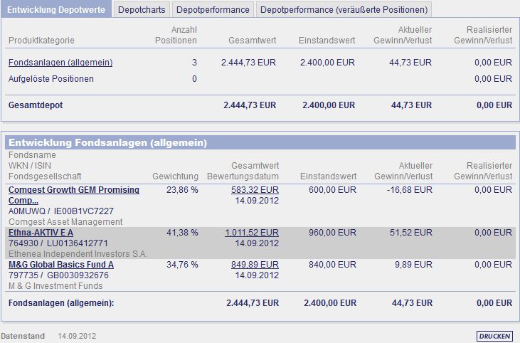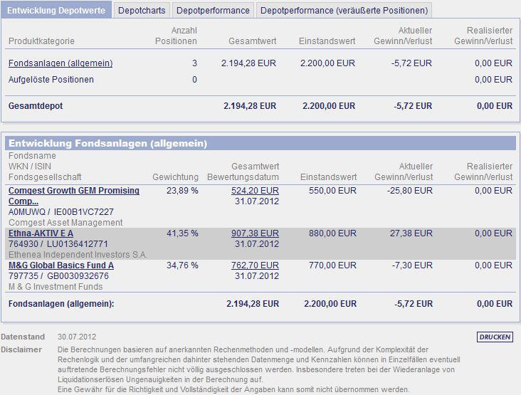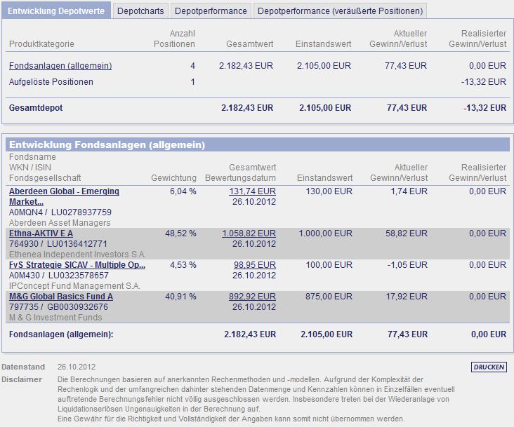 chart November 7, 2010 ein monat ist nun rum und das erste update ist da. ich denke mal das ich nicht viel zu dem update schreiben muß, da ich die fonds auch in meinem depot habe. nur der einstiegszeitpunkt ist ein anderer und ich bin gespannt wie es sich weiter entwickelt. Diesen Beitrag teilen Link zum Beitrag