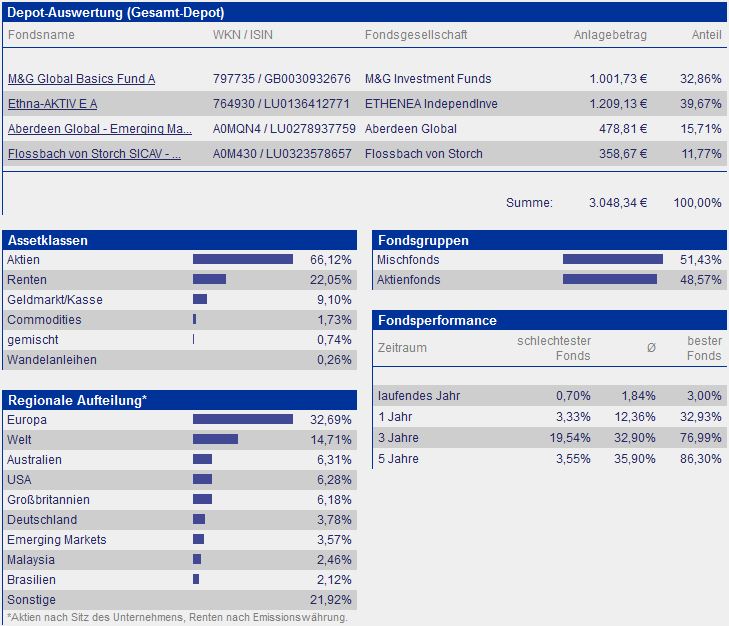 chart August 1, 2012 Na das sieht bei dir wirklich gut aus. Auch dein Depot finde ich interessant. Wenn ich es richtig sehe, hast du Mischfonds mit ETFs kombiniert. Genau an sowas habe ich auch gedacht. Besparst du alle 4 Fonds monatlich mit 50? Diesen Beitrag teilen Link zum Beitrag