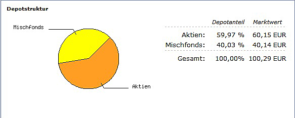 chart Oktober 10, 2010 hier ist nun das depot. am 1.10.10 wurden die ersten raten in das depot investiert. ich bin gespannt wie es sich die nächsten jahre so entwickelt. alle 14 tage werde ich es hier aktualisieren. Diesen Beitrag teilen Link zum Beitrag