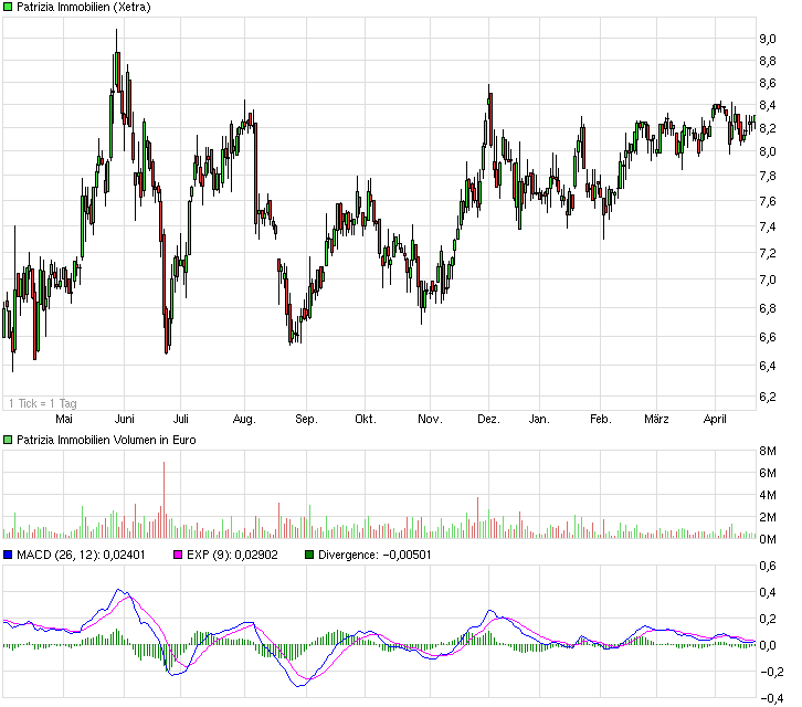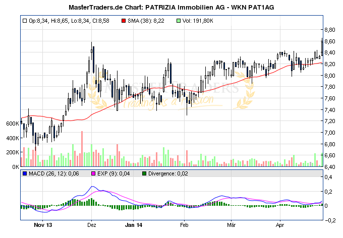 markymark April 29, 2014 Patrizia Immobilien könnte für einen Ausbruch interessant werden Heute +3% mit guten Umsätzen aus dem Dreieck raus auf ein 11 Monatshoch! War in der Korrektur auch recht stabil unterwegs. Solche Aktien haben oft Aufwärtsdrang, wenn sie zudem bei anziehendem Markt gleich mitgehen. Diesen Beitrag teilen Link zum Beitrag