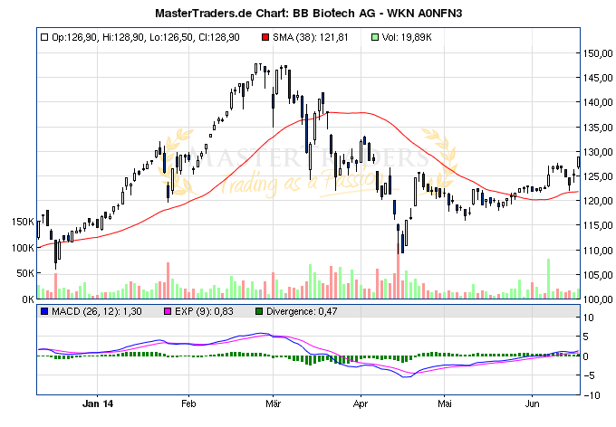 markymark Juni 1, 2014 Das wird spannend bei der TecDax-notierten BB Biotech. Deswegen Kauf einer Testposition Kriecht seit dem Einstieg langsam hoch, aber immerhin. Ein Geduldsspiel! Am Freitag gab es einen dicken Insiderkauf. Vielleicht beflügelt das die Entwicklung. http://www.finanznachrichten.de/nachrichten-2014-05/30436866-bb-biotech-ag-mitteilung-ueber-geschaefte-von-fuehrungspersonen-nach-15a-wphg-382.htm Warum hast du dich für Starbucks entschieden? Da gibt es bessere Branchenvertreter: https://www.wertpapier-forum.de/topic/43888-gastronomie-branche/ Kurz, da mir die Zeit fehlt. Starbucks hatte ich schon länger auf dem Schirm. Finde die Expansion des Unternehmens beeindruckend. Die Aktie ist zwar nicht mehr ganz gǘnstig, aber eben aufgrund des Wachstumstempos billige ich ein erhöhtes KGV zu. Die Dividendenrendite interessiert mich hier eher weniger. Seit kurzem wird auch interessanterweise an der Produktpalette gefeilt (Tee z.B.). EIne starke Marktstellung hat das Unternehmen sowieso. An jeder Ecke und immer gut was los. Konnte mir einige Male, auch durch meine USA Besuche, ein Bild davon machen. Hinzugezogen habe ich dann noch den Chart. Ich sehe hier nun eine Möglichkeit, mal eine Position zu nehmen. Ich stimme dir zu, daß es sicherlich fundamental noch bessere Unternehmen gibt. Aber ich vertraue hier mal meinem Gefühl. Deinen Link: Tja, da muß ich zugeben, daß ich ihn nicht kannte. Ich werde aber in Branchenfaden jetzt öfters vorbeischauen und deine guten Kommentare verfolgen. Diesen Beitrag teilen Link zum Beitrag