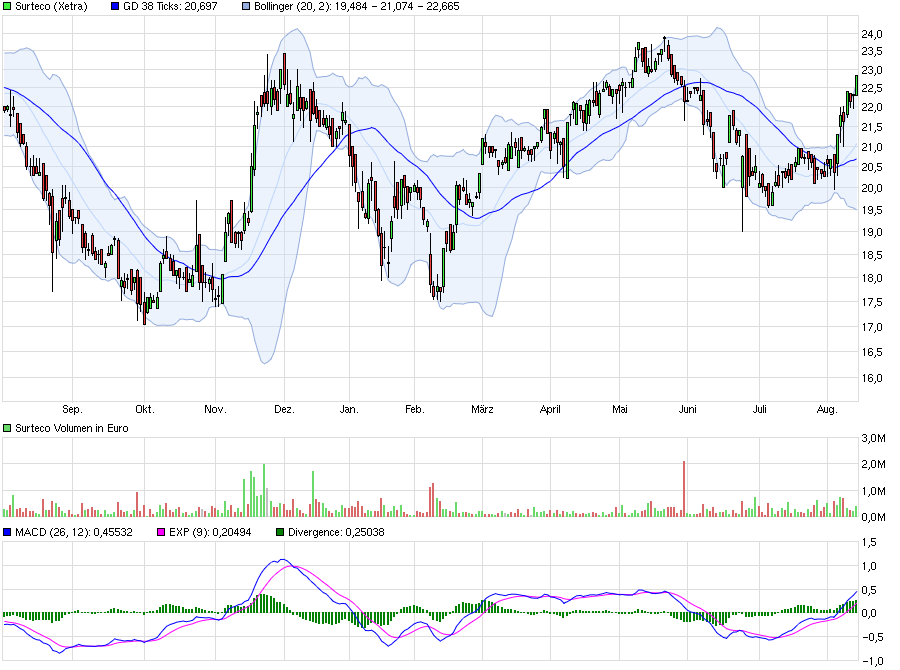 markymark August 12, 2016 Aktie ist mir ein Rätsel. Müßte deutlich höher notieren. Liegt möglicherweise noch am Abschluß der Integration von Süddekor. Dabei hat der Vorstand die überaus positive Jahresprognose nach Wegfall der Sonderbelastungen zuletzt bestätigt. Das KGV liegt bei ca 12 in 2016 und bei einem angepeilten Gewinn von ca zwei Euro in 2017 bei günstigen 10 bis 11. KUV derzeit bei 0,5, der Verschuldungsgrad bei läppischen 35% und die EQ bei 51%. Für die nächsten jahre wird Wachstum bei allen wichtigen Kennzahlen vorausgesagt. Entweder hat der Markt das Potenzial noch nicht erkannt oder da ist was im Busch, was ich noch nicht erahnen bzw sehen kann. Meine Intention für einen Einstieg war die Erwartung einer sprunghaften Entwicklung bei Gewinn und folgend anderen Kennzahlen bei gleichzeitiger kurstechnischen Aufwärtsdynamik. Ersteres wurde durch die Prognose des CEO dann auch bestätigt, letzteres fehlt noch. Aber Börse ist nunmal kein Wunschkonzert. Aktie sollte endlich Richtung 24€ ziehen. Mein Nebenwertesektor ist derzeit außerordentlich verlässlich und die Geduld zahlt sich aus. Surteco heute wie erwartet mit einem sehr guten Ergebnis. Umsatz und vorallem EBIT-seitig war das sehr überzeugend. Die Aktie erinnert mich von der Struktur her an eine Leifheit. Der Mittelständler befindet sich mehrheitlich in Familienbesitz. Die Dividende ist grundsolide und bietet bei steigendem Gewinn weiter Platz nach oben. http://www.ariva.de/news/surteco-se-surteco-mit-umsatzdynamik-im-zweiten-quartal-5845316 Die Aktie hatte bereits in der vergangenen Woche Donnerstag gleich mehrere Kaufsignale geliefert und zieht nun endlich an. Mein erstes Kursziel in greifbarer Nähe! Diesen Beitrag teilen Link zum Beitrag