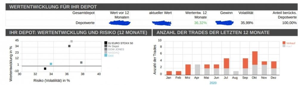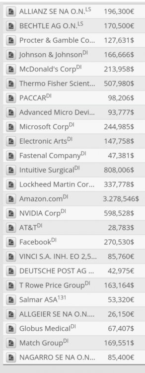 markymark Februar 13, 2021 · bearbeitet Februar 13, 2021 von markymark Kurz und knapp ein Résumé zum Jahr 2020. Ich war sehr Tech-lastig unterwegs. Das hat mir mehr als den Kopf gerettet. Ich werde in diesem Jahr etwas umschichten. Wieder mehr Unternehmen kaufen, die vom Ende der Pandemie profitieren. Technologiewerte eher wenig reduzieren. Bin derzeit aktiver, kaufe und verkaufe das ein oder andere. Take Two Interactive habe ich mit 35% Gewinn die Tage verkauft. Neu ins Depot gekommen sind in den letzten Wochen sind Paccar, Salmar, Vinci und Lockheed Martin. Grösste Positionen Match Group, Bechtle, Nvidia, Thermo Fisher und Microsoft. Leider wenig Zeit, das alles zeitnah zu kommunizieren. Performance 2020 +36% Liebe Grüße markymark Diesen Beitrag teilen Link zum Beitrag