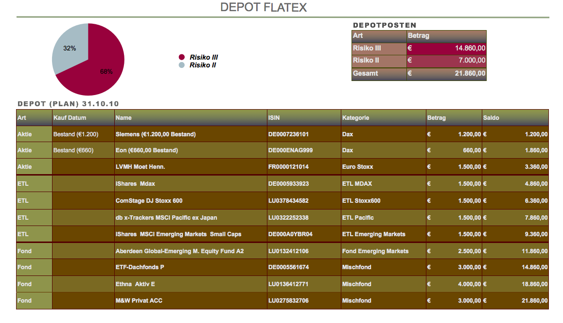 Ich hatte schon im Anfängerthread geposted und bin von Prospektständer auf den Depotthread von Supertops aufmerksam gemacht worden. Habe dann nochmal alles neu überarbeitet und bin zur folgenden Depotzusammenstellung gekommen: