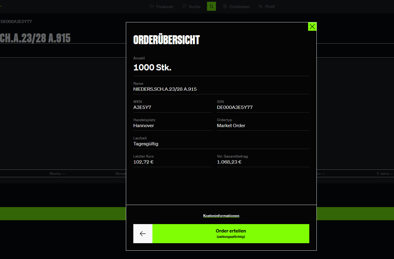 Ramstein 28. Februar Ich darf mich mal selbst zitieren aus "Anleihen für Dummies": Zitat Liquidität Manche Anleihen sind attraktiv, aber das meinen die Besitzer auch und verkaufen nicht; andere liegen wie Blei im Depot und keiner will sie kaufen. Daher sollte man immer prüfen, ob es auch Liquidität (Umsätze, Geld- und Briefkurse mit Volumina) an den Börsen gibt. Ein Indikator ist dabei das Emissionsvolumen. Hättest du das gelesen, hättest du hoffentlich nach der Liquidität geschaut: https://www.boerse-hannover.de/anleihen/DE000A3E5Y77/niedersachsen-land-landessch-v-2328-ausg-915/#instrument-historie https://www.boerse-hannover.de/anleihen/DE000A3E5Y77/niedersachsen-land-landessch-v-2328-ausg-915/#instrument-kennzahlen und erkannt, das du diese Anleihe mangels Angebot nicht kaufen kannst. Das Peanuts-Volumen liegt vermutlich bis zur Fälligkeit bei einer Versicherung o. ä. Diesen Beitrag teilen Link zum Beitrag