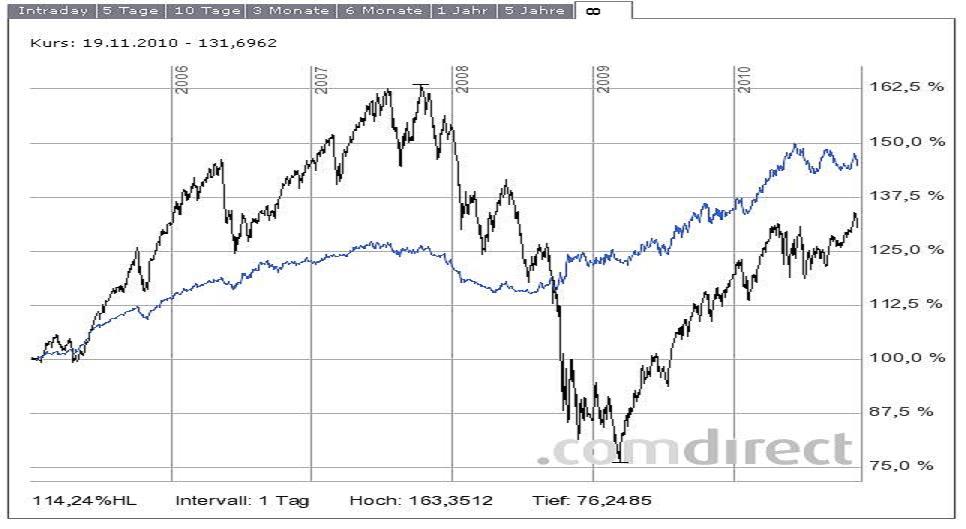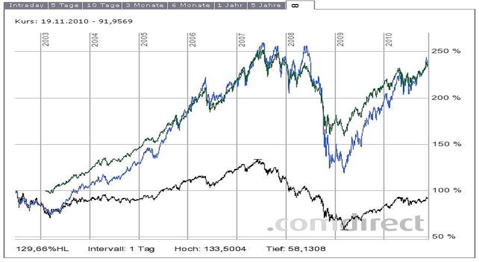 Maloney November 21, 2010 Wieso amundi? Sind die nicht schweineteuer? Im Gegenteil die Amundi Indexfonds sind recht billig (nur etwas teurer als die entsprechenden ETFS) mit einer TER von 0,3-0,5% und eine ganz gute Alternative für Sparpläne, wenn man sie ohne AA bekommt. Ich nutze die Amundi ganz gerne zum ReBalancing via Sparplan. Sobald deutlich mehr als 1000 angespart sind, kann man dann ja immer noch in den entsprechenden ETF umschichten. Ein Mangement Risiko hat man bei diesen reinen Indexfonds nur eingeschränkt, wie man auch gut im Chart sieht (Amunid will den MSCI Europe mit maximal 2% Tracking Error abbilden, habe jetzt mal den STOXX 600 zum Vergelich genommen, da der als Benchmark schon voreingestellt war) : Diesen Beitrag teilen Link zum Beitrag