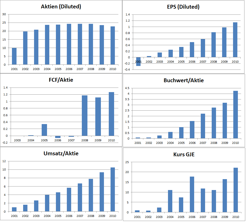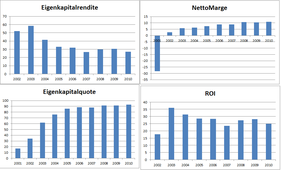 Kuba November 18, 2010 · bearbeitet November 18, 2010 von Kuba Sehr schöne Darstellung des Unternehmens. Weiter so! Ein Einstieg wäre momentan echt überlegenswert, zumal die Aktie von ihrem Hoch von USD 24 Anfang des Jahres auf nunmehr USD 17,5 zurückgekommen ist. Im 10-Jahreschart steigt die Aktie allerdings schön konstant nach oben. Hach ... Ich seh die in erster Linie als CashCow falls sie Umsatz/Gewinn und FreeCasFlow halten können. Eine EK-Rendite von 27& bei 93% Eigenkaptalquote haben nicht viele Unternehmen. Wenn das Unternehmen wieder wächst, dann ist es eine Perle. Aber der FreeCashFlow reicht auch so zu dicken Rückkäufen + Dividenden Du musst bei den Aktien-Bewertungskennzahlen (KUV,KGV,FCF/Aktie usw.) mal den Netto-Cash rausrechnen. Der ist ja mit 2,77 USD nich unerheblich. Dann kommt man auf ganz nette Zahlen. Und was halt auch ganz nett ist, dass kein Goodwill in der Bilanz ist. Also auch keine Abschreibungen drohen. Diesen Beitrag teilen Link zum Beitrag