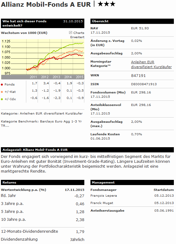 Der 8471912 ist darin ein etwas größerer Posten. Ich will einfach nur einmal wissen, wie der FOnd beurteilt wird? Eine Meinung eben! Allianz scheint schon solvent zu sein, aber man weiss ja nie!