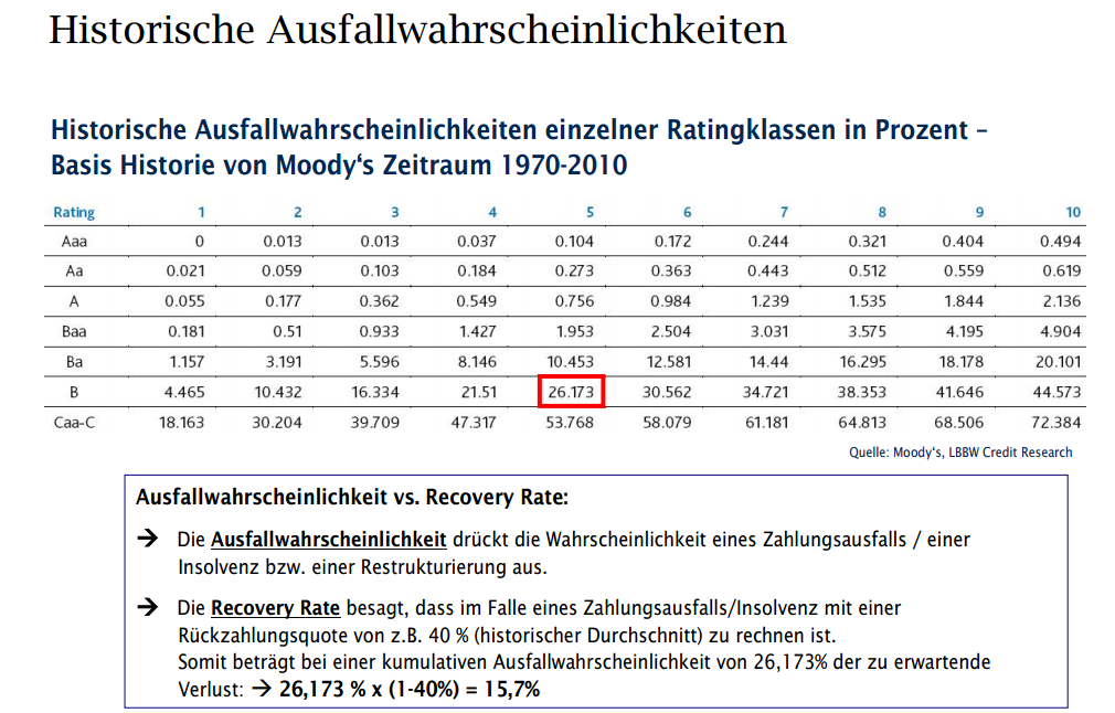 otto03 Februar 1, 2014 Wie hoch ist denn eigentlich die Ausfallrate von dem High Yield Bond Index? Auf dem Factsheet wird das nicht angegeben... - wann? - welcher Zeitraum? - warum glaubst du diese Zahl würde dir in irgendeiner Weise weiterhelfen? - kannst du eine Suchmaschine bedienen? vielleicht würdest du beispielhaft so etwas finden: Diesen Beitrag teilen Link zum Beitrag