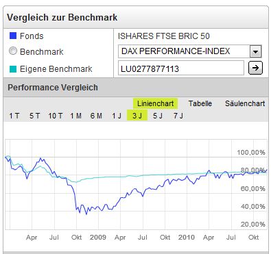 Hasenhirn Dezember 3, 2010 · bearbeitet Dezember 3, 2010 von Hasenhirn was stimmt mit dem DWS Bric nicht? Hallo Jürgen--ich glaube, es geht darum, ob es sinnvoll ist, als einzigen Fonds mit 50 Euro monatlich ausgerechnet einen BRIC-Fonds zu besparen--vor allem, wenn man ohnehin sein Depot aufräumen will. Felix hat in den BRIC-Fonds jetzt schon etwa 30% seines Fondsportfolios reingespart, und das sollte vorerst genug sein, zumindest wenn man seine "mittlere Risikobereitschaft" berücksichtigt. Ansonsten klebt der DWS-Fonds (LU0210301635) natürlich sehr dicht an (oder unter) seinem Index, was die Frage aufwirft, warum man nicht lieber gleich einen echten Indextracker wählt...--Gruß, H. PS--sicher, dass du da den richtigen Chart angehängt hast? Diesen Beitrag teilen Link zum Beitrag
