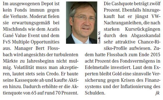 Stoiker Mai 4, 2016 FvS Multiple Opportunities: Bert Flossbach kauft mehr Gold Mein Link „Die Aktienquote im Fonds liegt nun erstmals seit zwei Jahren unter 60 Prozent". Den Goldanteil hingegen hat der Kölner Vermögensverwalter von rund 8 Prozent vor einem halben Jahr auf nunmehr 14 Prozent angehoben. In Summe hat Flossbach nach eigenen Angaben nun fast 1,5 Milliarden in physisches Gold angelegt. Diesen Beitrag teilen Link zum Beitrag
