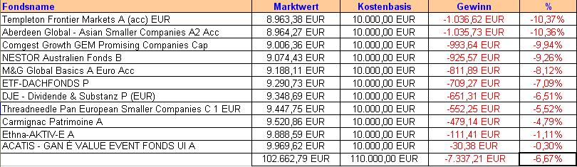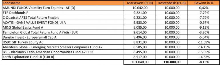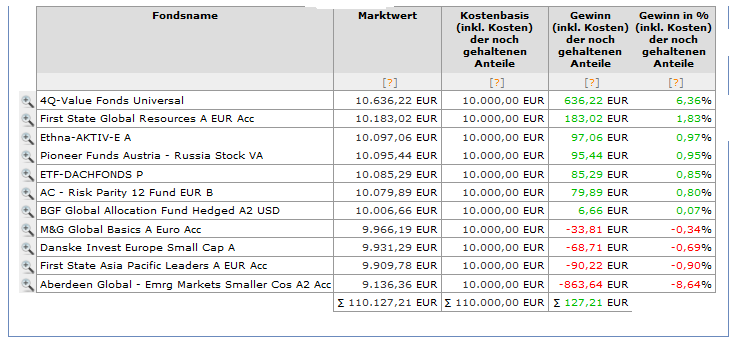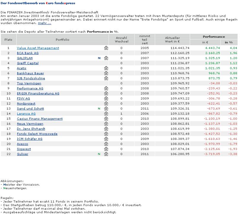 Bei solchen Wettbewerben würde ich aber keine defensiven Fonds beimischen. Entweder die radikale Aufstellung gelingt - dann bist du vorne mit dabei - oder sie misslingt - und du verlierst richtig. Aber eine ausgewogene Aufstellung reicht i.d.R. für keine Position an irgendeinem Ende der Rangliste. Dann lieber irgendwelche aggressiven Mischfonds.