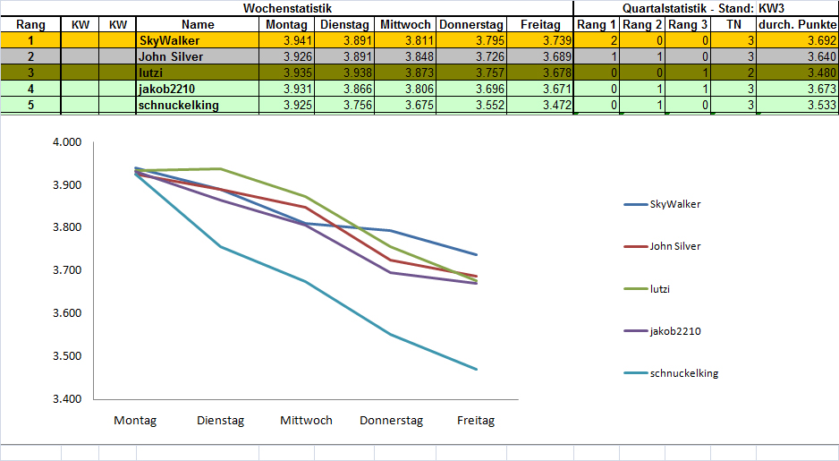schnuckelking Januar 31, 2011 Hier also nachgereicht die Ergebnisse von vorletzter Woche: Gewinner ist Mr. SkyWalker! PS: Danke für Euer Verständnis und die Danksagungen Diesen Beitrag teilen Link zum Beitrag