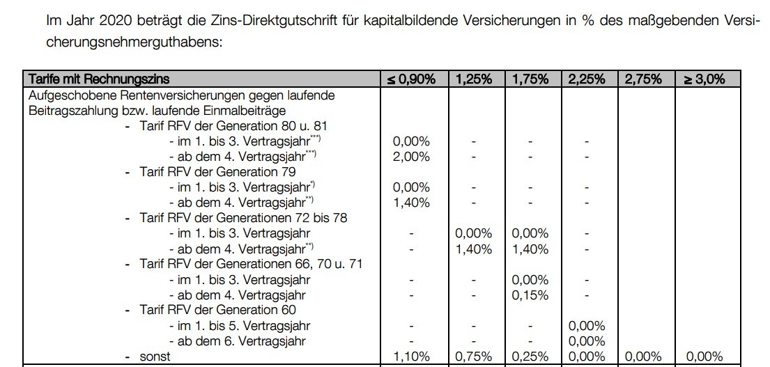 Was xerodan schreibt ist aber für alle Vorsorgepläne gleich, sobald sie erstmal in der freien Verzinsung sind. Dennoch unterscheiden sich die Zinssätze der Generationen