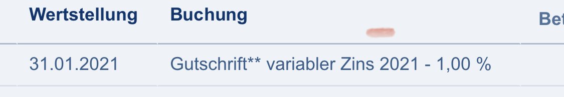 Naja, ich finde 1,0% immer noch sehr gut. Ich persönlich überlege gerade ob ich einen BSV mit 0,5% wieder bespare. Das ist, bei der aktuellen (offiziellen) Inflationslage, mehr als Werterhalt.