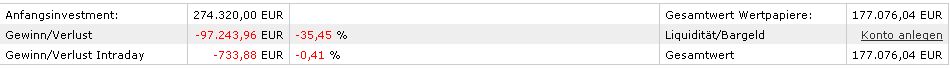 177.000 EUR (aktueller Depotwert), keine weiteren Investitionen geplant