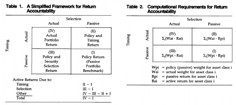 lurklurk Juni 14, 2014 · bearbeitet Juni 14, 2014 von lurklurk Determinants of Portfolio Performance von Gary P. Brinson, L. Randolph Hood, and Gilbert L. Beebower (BHB1986_determinants of portfolio performance.pdf) Ich bin auf ein R-Package (pa) gestoßen, mit dem man eine Brinson-Attribution komfortabel durchführen kann. Okay, das wird jetzt nicht so viele hier im WPF betreffen (R -Nutzer), aber interessant ist ein PDF der Autoren mit allgemeineren mathematischen Erklärungen. Insbesondere wird dort neben dem schon aus dem Thread hier bekannten Einperioden-Brinson-Modell (S.3) auch auf eine Mehrperiodenberechnung eingegangen (S. 10). Ab S.13 wird eine Regressions-Attribution besprochen, und ab S. 19 eine Verbindung zwischen Brinson und Regressionen hergestellt. Genauer; Brinson als Spezialfall einer Regressionsattribution beschrieben. Wem bringt das PDF etwas? Dem einfach thematisch Interessierten. Oder demjenigen, der die besprochenen Formeln in Excel, VBA, Matlab oder sonstwo umsetzen will, für eigene Zwecke. Nebenbei, Brinson wird auch seit langem in professionellen Portfolio-Tools umgesetzt, das ist keine "wissenschaftliche Spielerei aus dem Elfenbeinturm". Hier z.B. ein Screenshot aus einer Factset-Broschüre: Diesen Beitrag teilen Link zum Beitrag