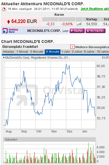 Chemstudent Januar 30, 2011 Fragen: 1. Warum sehen Charts für dieselbe Aktie so unterschiedlich auf verschiedenen Börsen aus? Hat das mit Änderung von EUR/USD Kurs zu tun? (s. Bilder) Liegt am EUR/USD Kurs. Du schaust dir einmal die Aktie in USD an (bei stockcharts) und einmal in EUR (bei onvista) Zur überprüfung kannst du bei Stockcharts dir den Kurs auch in Euro anzeigen lassen, indem du hinter das Symbol der Aktie tippst: ":$XEU" In diesem Fall also: "MCD:$XEU" (ohne Anführungszeichen) 2. Für deutsche Börsen kenne ich nur die Chart-Services Onvista.de und comdirect.de , aber sie sind nicht so gut wie StockCharts.com, vor allem weil man kann gleitende Durchschnitte nicht so flexible aufbauen. Kann jemand einen kostenlosen Chart-Service oder Software empfehlen die vergleichbar mit StockCharts.com ist? Es geht nur darum Charts zu analysieren und ich kaufe ja sowieso über meinen Broker. tradesignalonline.com Diesen Beitrag teilen Link zum Beitrag