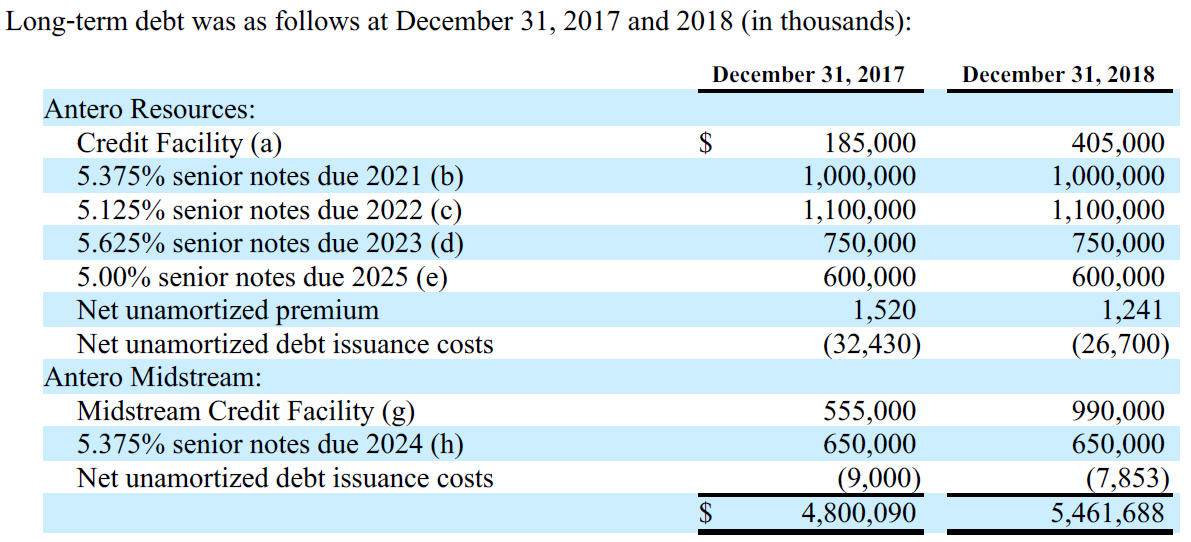 Cai Shen Februar 20, 2019 vor 2 Stunden schrieb Kezboard: Antero Resources Finance Corp.DL-Notes 2014(14/21) (A1ZHZF|US03674PAL76) @100,735 -> YTM = 5,08%, CY = 5,34% Von Laufzeit, Rating und Rendite für so einen Kurzläufer ganz angetan hab ich die letzten Abschlüsse nur kurz quergelesen ... und gegen einen Einstieg entschieden. Für den Verlust 2016 hätte ich selbst als Aktionär Verständnis, seit dem Tief von knapp 2 USD waren die NGL Futures (NYMEX Henry Hub) auch durchgängig über 3 $. Die Cash Flow Statements halte ich aber für eine mittlere Katastrophe, Capex über die letzten 5 Jahre immer deutlich über dem op. CF. So wie es aussieht verdienen die (konstant) nichtmal den sustaining Capex, über die letzten Jahre ein bunter Strauß an Neuverschuldung und Kapitalerhöhung - von was wollen die jemals tilgen? Habe ich da was übersehen, positiver Ausblick? Diesen Beitrag teilen Link zum Beitrag