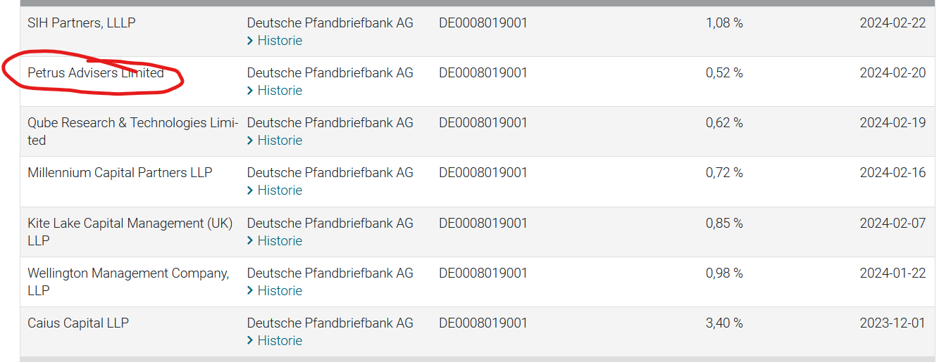 Nur weil ich da gerade zurfällig geguckt habe, Short Positionen auf den Titel laut Bundesanzeiger: