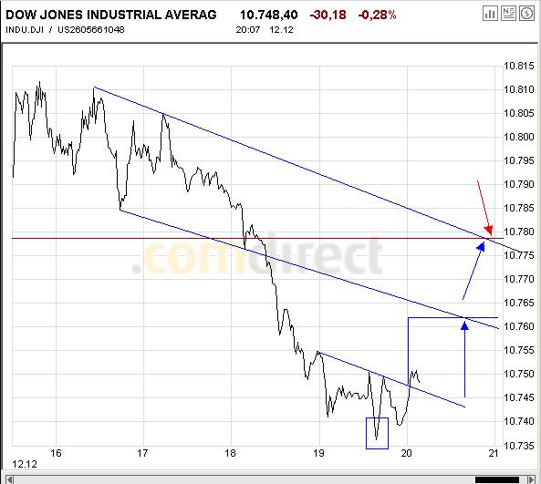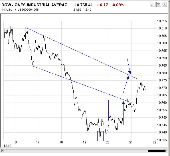 Auch der DJI befindet sich in einem Abwärtstrend, innerhalb dieser Bewegung kurz vor einem Up - Norden. Nächste ZM 10765. Dieser Schelm bastelt wohl bis 20:00 daran, will nichts böses denken.