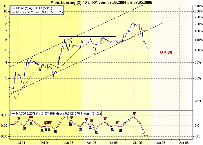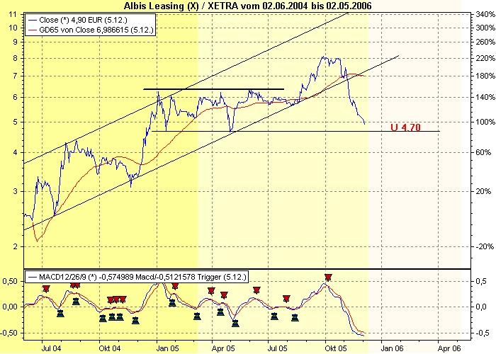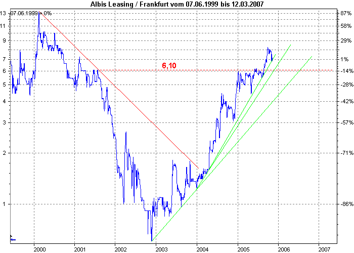 l3cs November 9, 2005 · bearbeitet November 13, 2005 von l3cs Hi, danke, andy! Werd' die Aktie dann noch behalten. Gruß, l3cs EDIT: Hmmm....schon bei 5,88 EUR 21.10.2005 10:11:27 (PERFORMAXX) ALBIS Leasing kaufen Die Experten von "Performaxx" empfehlen die Aktie von ALBIS Leasing (ISIN DE0006569403/ WKN 656940) in ihrer Ersteinschätzung zu kaufen. Die ALBIS-Gruppe sei der größte banken- und herstellerunabhängige Leasingkonzern Deutschlands. Innerhalb des ALBIS-Konzerns seien die zwei Bereiche "Leasing" sowie "Fonds & Service" zu differenzieren, die sich ihrerseits in diverse Aktionsbereiche gliedern würden. Anzeige: Unter plausiblen Annahmen ergebe sich ein fairer Unternehmenswert von 10,11 Euro je Aktie und damit ein Aufwärtspotenzial von über 27 Prozent. Zusätzliche Kursfantasie entfache das IPO der Tochter Rothmann & Cie., der man alleine einen Börsenwert in Höhe der jetzigen Marktkapitalisierung der ALBIS Leasing AG zutraue. ALBIS Leasing verfüge über ein ausgefeiltes Geschäftsmodell mit stabilem Ertragssockel und hohen Wachstumschancen. Das Emissionshaus Rothmann im Bereich "Fonds & Service" sei fest etabliert und besitze mit seinem großen Kundenbestand das Potenzial, von der erwarteten positiven Branchenentwicklung überproportional zu profitieren. Besonders die einzelnen Maßnahmen zur Ausweitung der Vertriebswege wie das Finanzportal "Finanzdock" sowie die Bankbeteiligung würden weitere Ertragsspielräume eröffnen. Gelinge der Gesellschaft die Etablierung dieser Vertriebskanäle, könnten sich die aktuellen Prognosen der Experten bald als zu konservativ erweisen. In Anbetracht dessen und mit Blick auf das hohe Kurspotenzial lautet das Urteil für die Aktie von ALBIS Leasing "kaufen", berichten die Experten von "Performaxx". Quelle: AKTIENCHECK.DE http://aktien.onvista.de/empfehlungen.html?ID_OSI=82659#news Hoffe, dass das besser wird. Hat einer vielleicht Aktien von Albis Leasing? Wenn ja, wie steht ihr dazu? Gruß, l3cs Diesen Beitrag teilen Link zum Beitrag