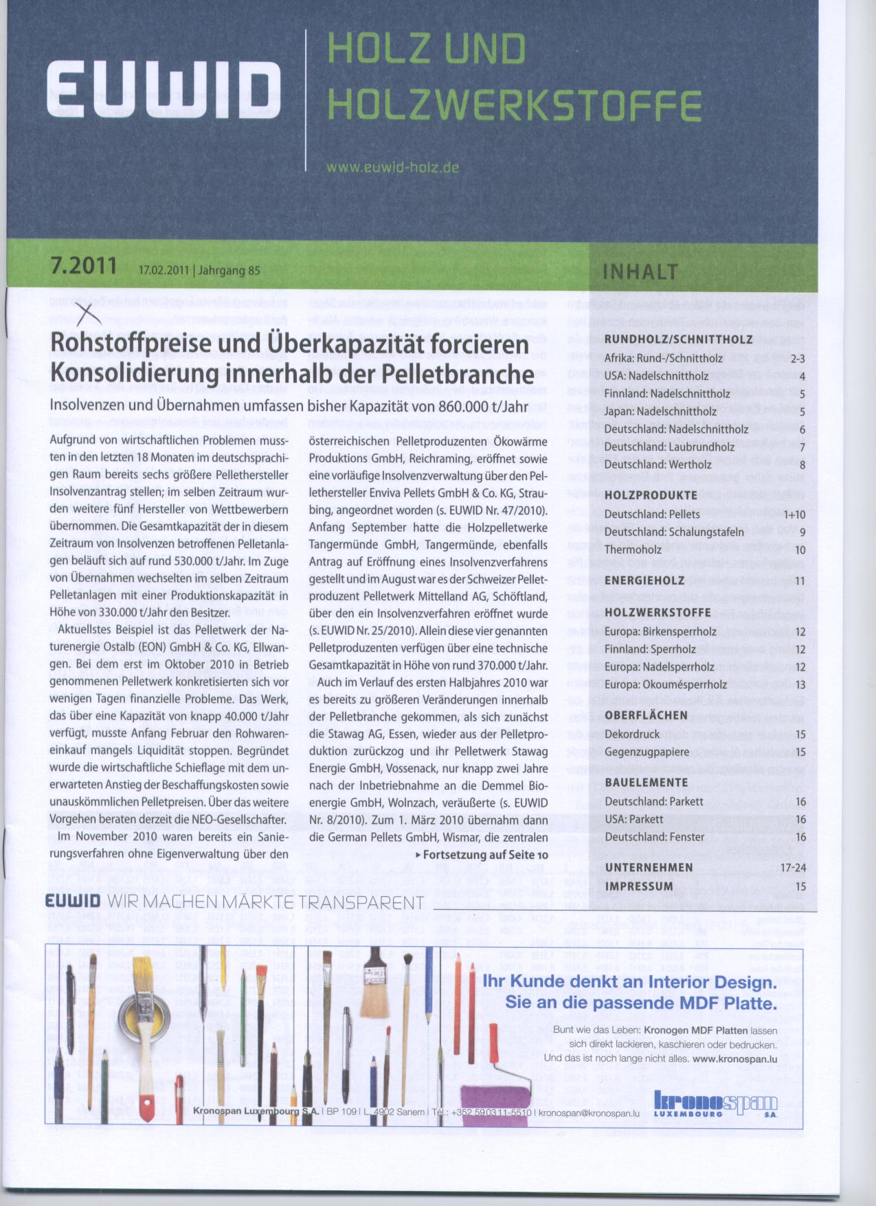Ramstein März 25, 2011 Immer schön sachlich bleiben... Zu der Marksitiation kann sich jeder unter dem Link www.euwid.holz.de Suchbegriff: "Marktsituation Pellets" selbst ein Bild machen. Da wird beschrieben, dass bereits 6 Pelletsfirmen im letzten Jahr Insolvenz anmelden mußten, da es auf dem Markt gewaltige Überkapazitäten gibt und die Rohstoffpreise explodieren. Nenne uns doch einfach die 6 insolventen Pellethersteller aus 2010, damit wir uns ein Bild machen können. Danke. Diesen Beitrag teilen Link zum Beitrag