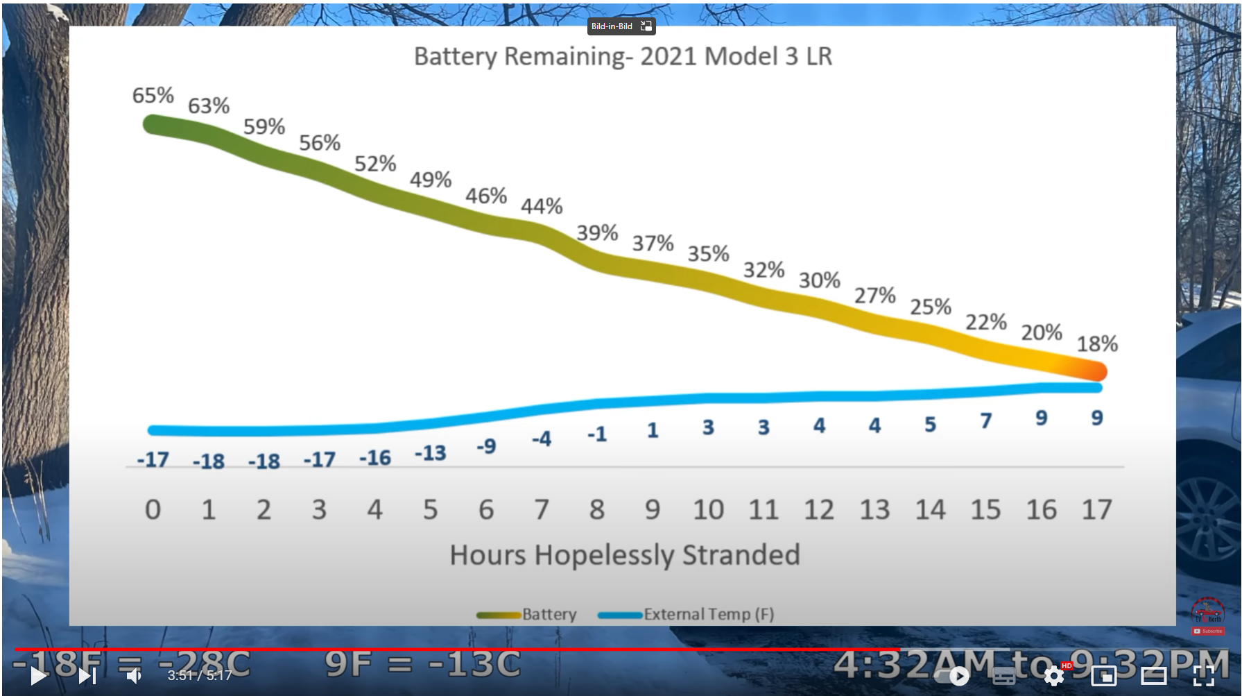 slowandsteady März 9, 2023 · bearbeitet März 9, 2023 von slowandsteady Stranded Tesla Battery Test- How Long Will It Last? - YouTube Und jetzt mal auf Verbrenner umrechnen: Wie lange hält die Auto-Heizung bei Stau durch? (bz-berlin.de) Zitat Beim Verbrenner nennt der Autoclub je nach Modell und Ausstattung zwischen 0,8 und 1,2 Liter pro Stunde – beim Benziner tendenziell etwas mehr als beim Diesel. [...] Heckscheibenheizung oder Sitzheizung profitieren allerdings nicht von der Abwärme des Motors: Sie benötigen Strom, den sie von der Lichtmaschine beziehen. Deren Betrieb erhöht den Kraftstoffverbrauch um etwa 0,1 Liter pro Stunde für 100 Watt Leistung, die zum Beispiel die Sitzheizung braucht. Wenn der Tesla also mit 47% seiner Kapazität 17h Temperatur halten schafft, entspricht das einem Verbrenner mit 17/0.47 = 36l Tankinhalt. Das ist genau die Menge, die mein Citroen C1 als Tankinhalt hat, allerdings sind die 0.8 bis 1.2l Leerlauf-Verbrauch ohne Temperaturangabe und dürften bei -20 Grad noch etwas höher ausfallen. Das Argument "mit E-Auto muss ich im Stau frieren" ist einfach nur Quatsch. Diesen Beitrag teilen Link zum Beitrag