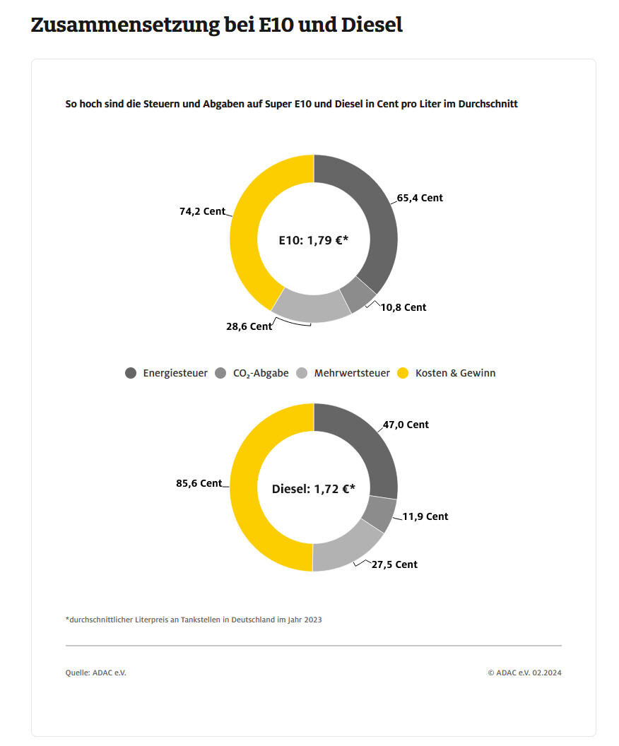 Holgerli August 11, 2024 vor 3 Minuten von magicw: was wird am Diesel subventioniert? Ist Das jetzt Dein Ernst? Du hättest einfach nur das Diagramm mit dem Diagramm darüber für E10-Benzin vergleichen müssen: Quelle: ADAC Um Deine Frage also zu beantworten: Obwohl ein Liter Diesel eine höhere Energiedichte hat als ein Liter Benzin, wird Diesel mit einer 18,4 ct geringeren Energiesteuer subventioniert. Diesen Beitrag teilen Link zum Beitrag