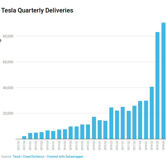 Hawkeye Februar 5, 2019 @Faustus Naja... The iPhone was released in the United States on June 29, 2007 at the price of $499 for the 4 GB model and $599 for the 8 GB model... Model 3 kostet schon ein wenig mehr.. und der potenzielle Markt ist auch ein wenig groesser Wenn Tesla 2019 im Schnitt 6K / Woche schafft waeren das > 300K. Entspricht dann dem Umsatz von 25 - 30 Mio iPhones Hier nochmal der Trend der bisherigen Verkaufszahlen pro Quartal. Q1 gibts einen Rueckgang aber danach... Nicht mehr lange und die Weltstadt Wolfsburg (~120,000) ist schon in Reichweite Diesen Beitrag teilen Link zum Beitrag