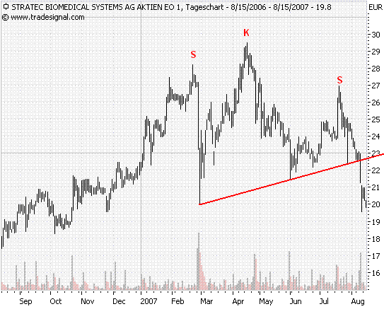 Mitch August 15, 2007 Es lässt sich auch eine SKS-Formation einzeichnen: Daraus errechnet sich ein Kursziel von ca. 13,87 . Diesen Beitrag teilen Link zum Beitrag